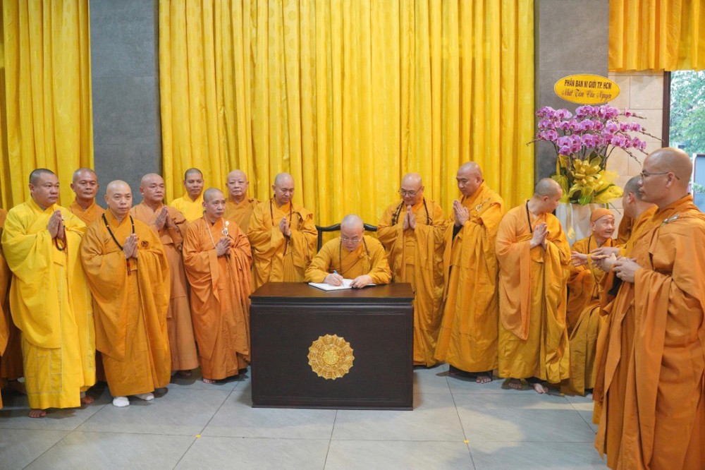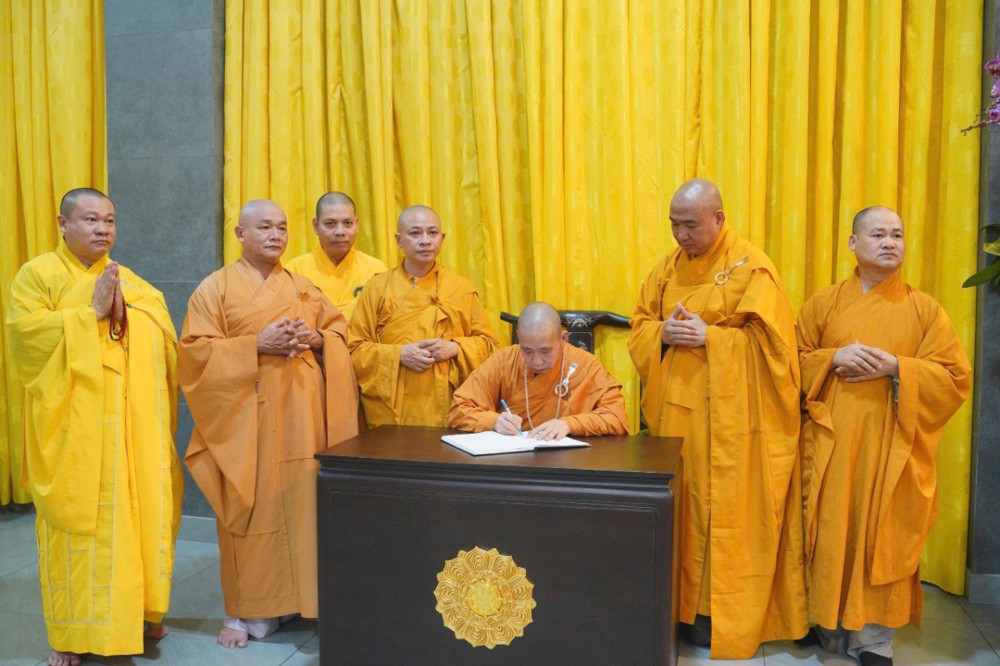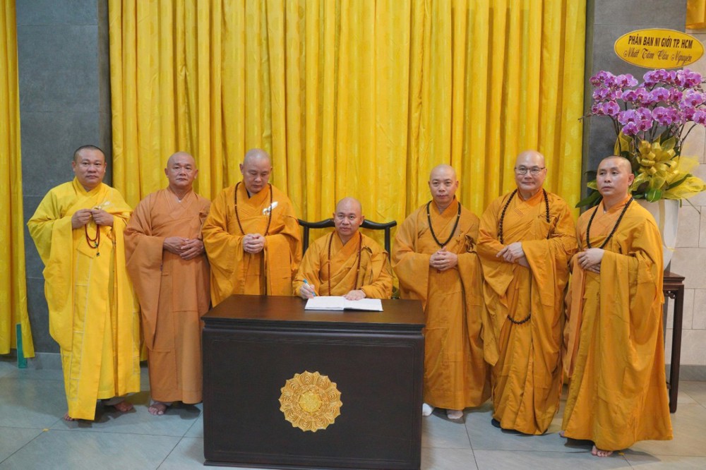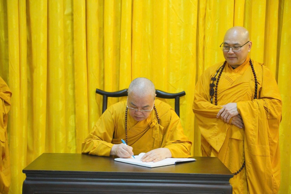 Đoàn do Trưởng lão Hòa thượng Thích Thanh Nhiễu, Uỷ viên Thường trực HĐCM, Phó Chủ tịch Thường trực HĐTS làm trưởng đoàn. Tháp tùng có chư Tôn đức Ban Thường trực Hội đồng Trị sự, chư Tôn đức Văn phòng I – Văn phòng II Trung ương Giáo hội cùng các ban, viện TƯ GHPGVN.