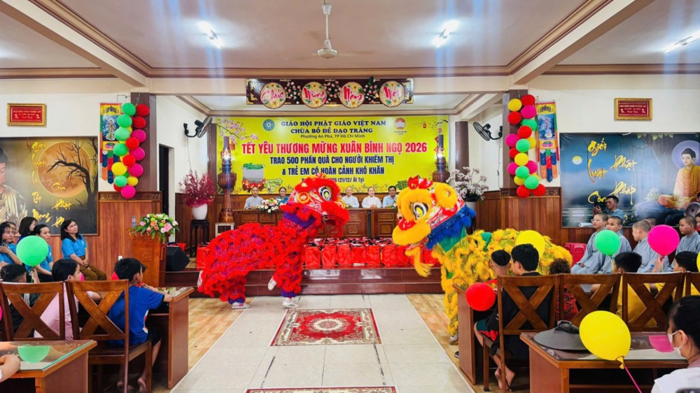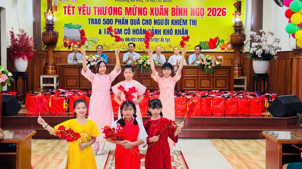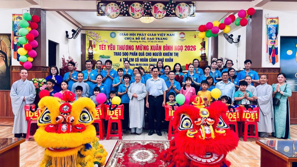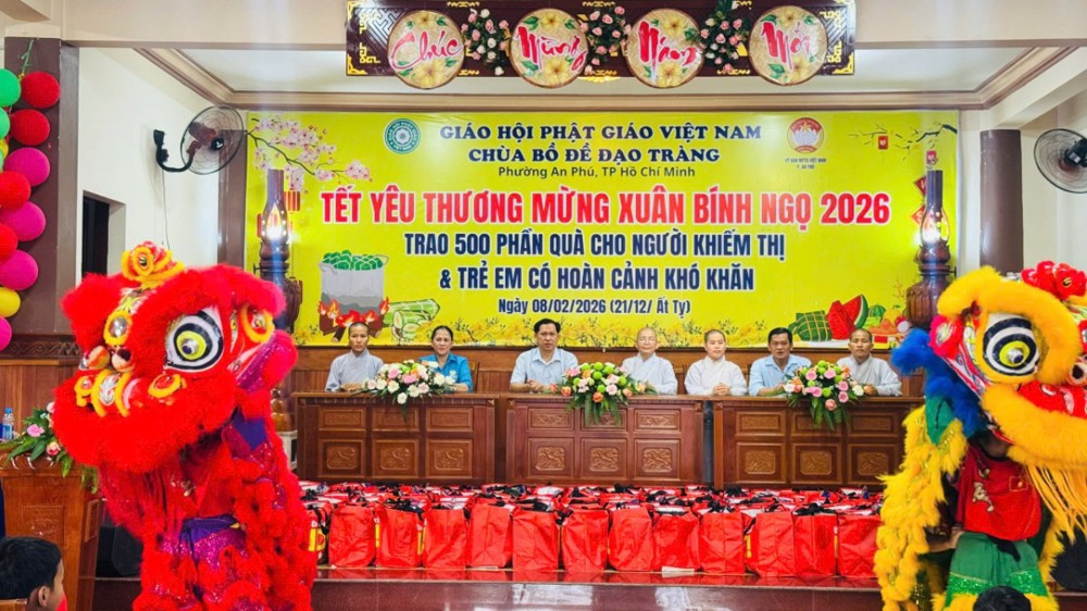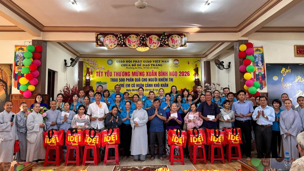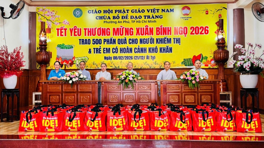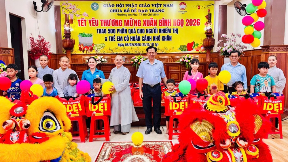 PSO - Ngày 8/02/2026 (nhằm 21/12/Ất Tỵ) tại Chùa Bồ Đề Đạo Tràng (KP. Bình Phước B, P. An Phú, TP. Hồ Chí Minh) đã diễn ra chương trình trao tặng 500 phần quà, mỗi phần quà trị giá 600 ngàn đồng dành cho người khiếm thị và trẻ em có hoàn cảnh khó khăn trên địa bàn, mang đến không khí ấm áp, nghĩa tình trong những ngày giáp Tết Bính Ngọ 2026.