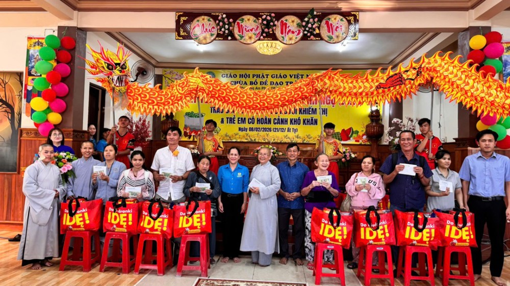 Phát biểu tại buổi trao quà, Ni sư Thích nữ Từ Thảo chia sẻ: Tết là dịp sum vầy, là lúc tình người được lan tỏa. Với tinh thần Phật giáo đồng hành cùng dân tộc, Chùa Bồ Đề Đạo Tràng mong muốn góp một phần nhỏ để những mảnh đời kém may mắn cũng được đón xuân trong niềm vui, sự an lành và yêu thương.