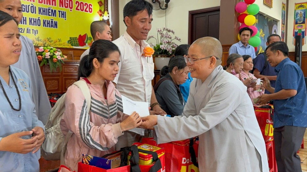 Mỗi phần quà trao tặng tuy giá trị vật chất không quá lớn nhưng chứa đựng tấm lòng sẻ chia, tinh thần từ bi và trách nhiệm với cộng đồng, gồm các nhu yếu phẩm thiết thực phục vụ đời sống sinh hoạt ngày Tết. Đối với người khiếm thị và các em nhỏ có hoàn cảnh khó khăn, những phần quà ấy không chỉ giúp vơi bớt lo toan mà còn là nguồn động viên tinh thần, để mùa xuân thêm trọn vẹn và ấm áp hơn.