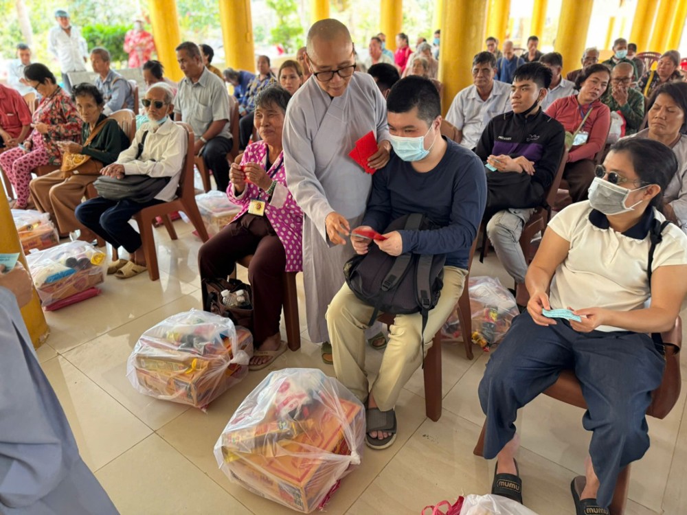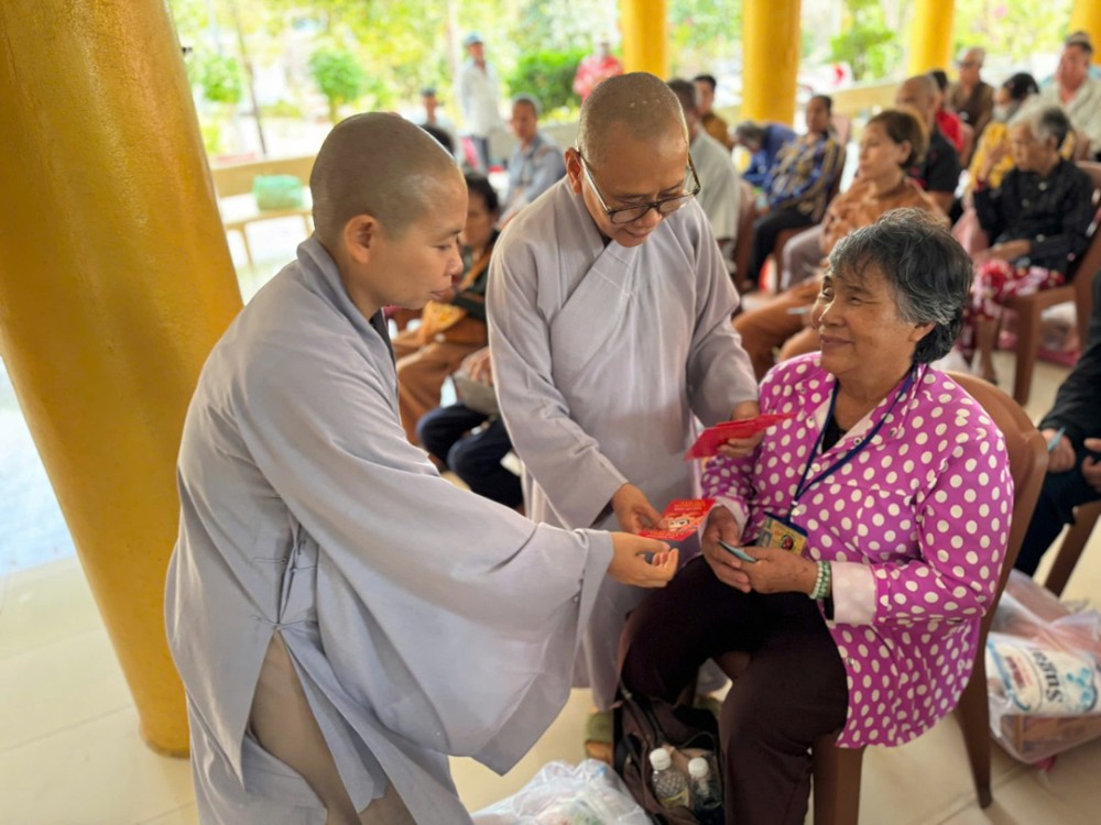 Tại buổi trao quà, Ni sư Trụ trì đã hướng dẫn đại chúng niệm Phật gieo duyên lành cùng Tam bảo, cầu chúc cho bà con cùng gia đình một năm mới an khang, sức khỏe, gặp nhiều thuận duyên trong cuộc sống.