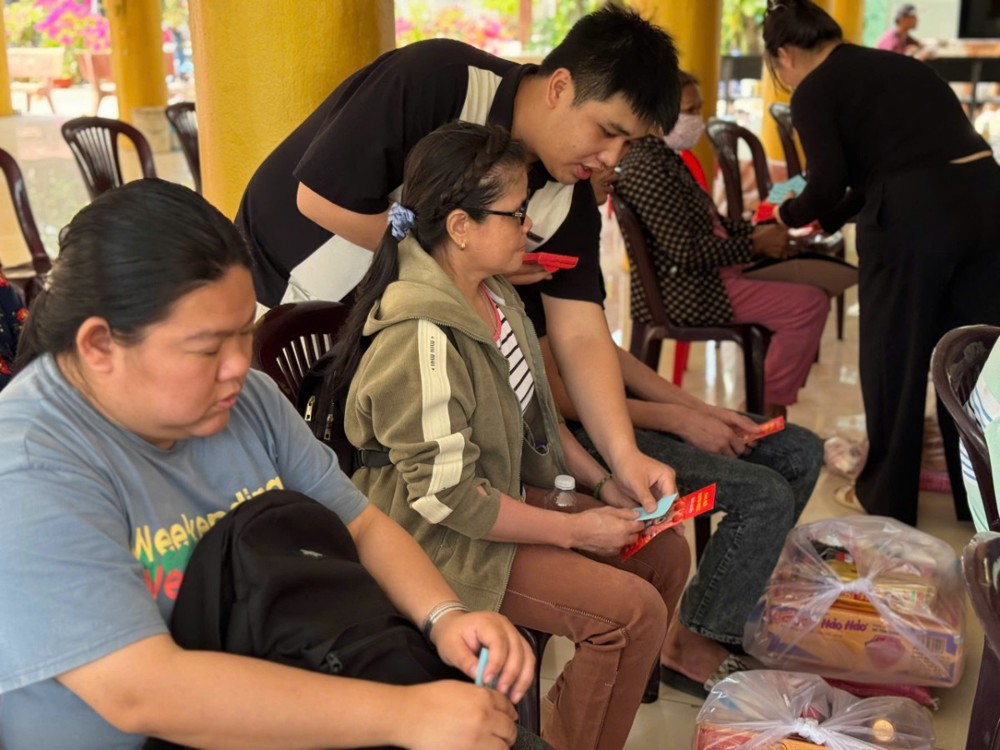 Hưởng ứng chương trình của Bổn tự, năm nay gia đình Phật tử Minh Nhật (công ty Hùng Thắng- xã Phước Hải) đã phát tâm đồng hành cùng nhà chùa, chung tay góp sức để lan tỏa tình thương, sẻ chia khó khăn với người khiếm thị tại địa phương.