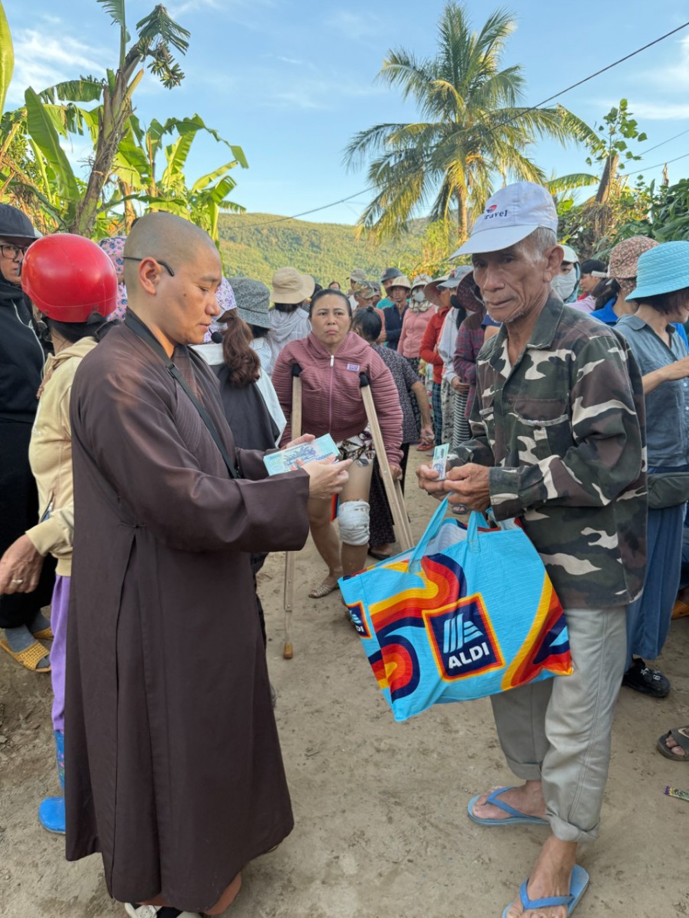 Theo thông tin từ các cơ quan truyền thông, hạ tuần tháng 11, mưa lớn ở thượng nguồn khiến thủy điện Sông Ba Hạ xả lũ đột ngột với lưu lượng lớn, gây ngập sâu và thiệt hại tại nhiều khu vực hạ du. Nhiều hộ dân bị sập nhà, hoa màu bị cuốn trôi, đời sống sinh hoạt và sản xuất bị ảnh hưởng nghiêm trọng. Trước tình hình đó, thực hiện công văn của Hội đồng Trị sự, bằng tinh thần từ bi của người con Phật và truyền thống “lá lành đùm lá rách”, đạo tràng chùa Di Đà đã tổ chức chuyến đi nhằm hỗ trợ bà con vượt qua giai đoạn khó khăn sau lũ lụt.