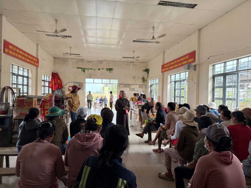 Từ TP.HCM, đoàn di chuyển đến xã Hòa Xuân. Do đường làng nhỏ hẹp và lầy lội, đoàn phải chuyển hàng hóa sang các xe tải nhỏ để tiếp cận thôn Hiệp Đồng, nơi chịu thiệt hại nặng nhất. Tại đây, Ni sư Thích Nữ Nguyên Chủng và đoàn đã trao 200 phần quà đến người dân. Sau đó, đoàn tiếp tục đến thôn Cẩm Thạch để trao thêm 30 phần quà.