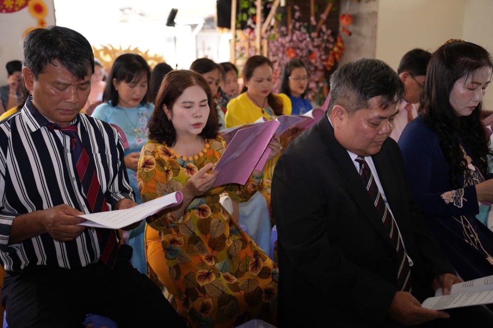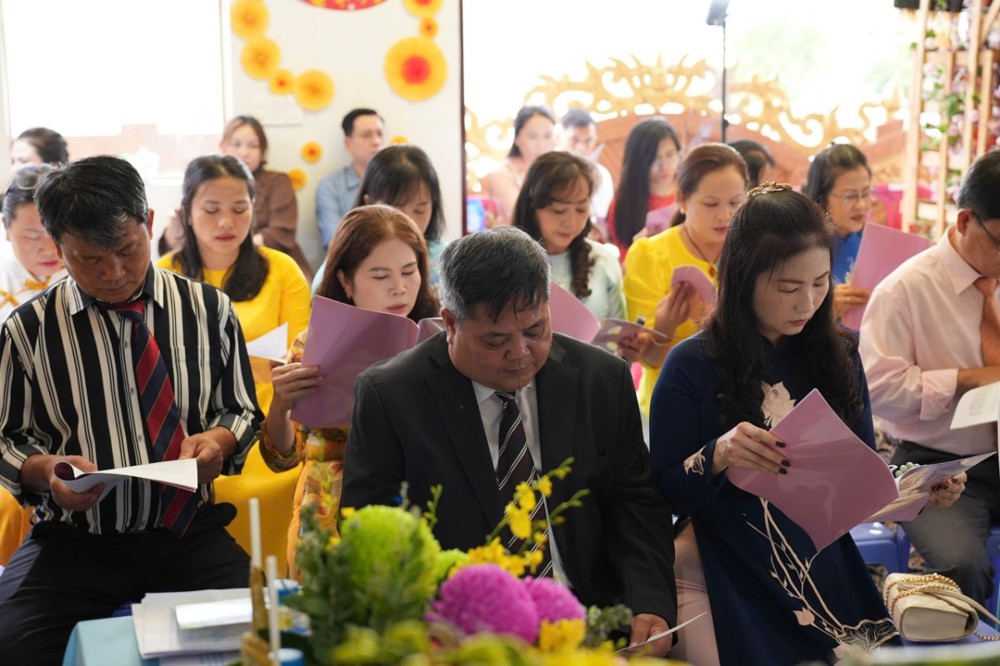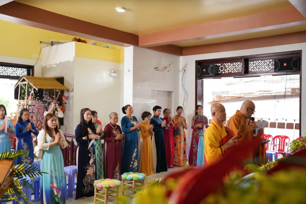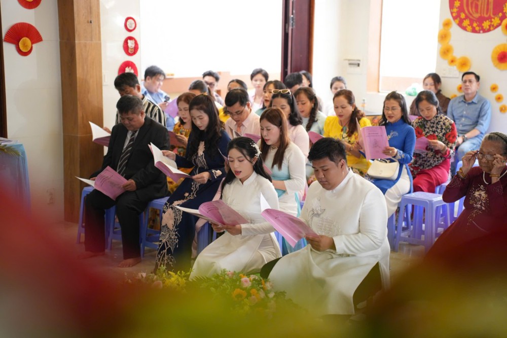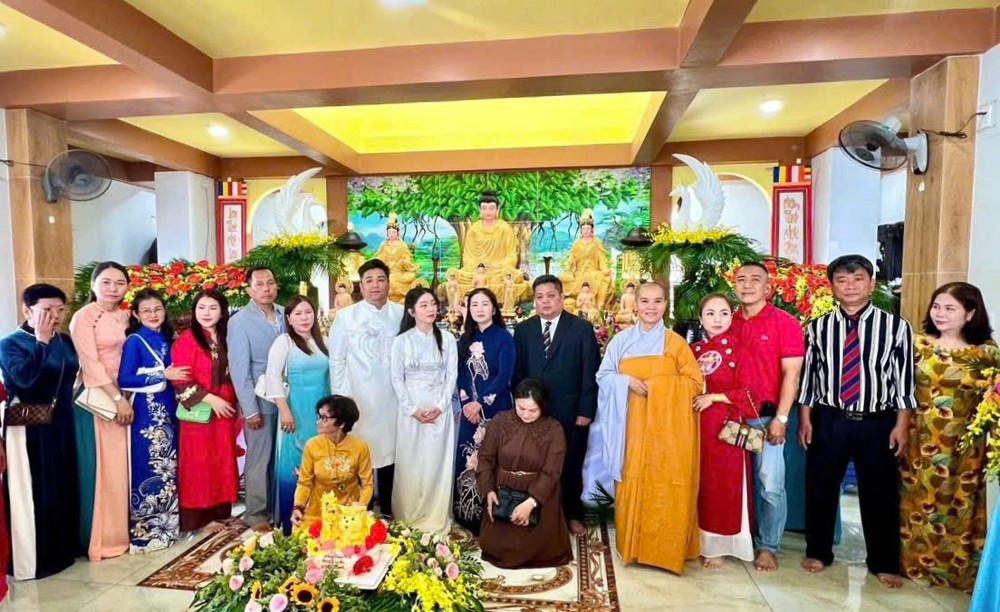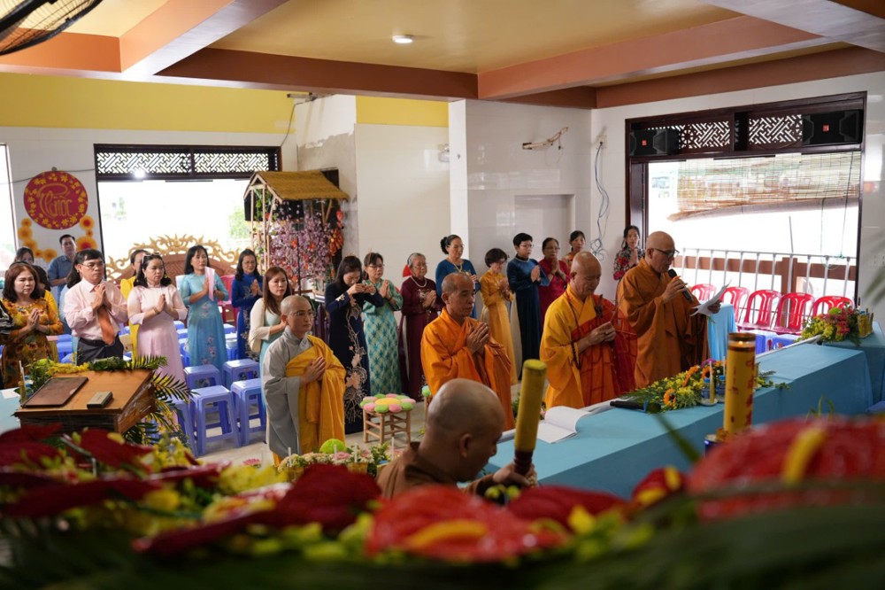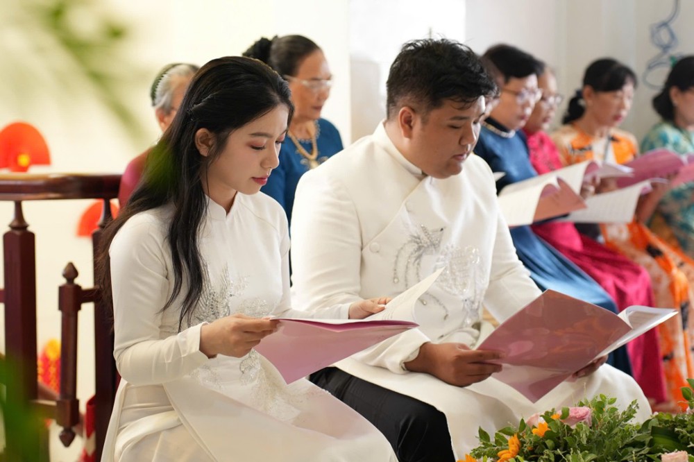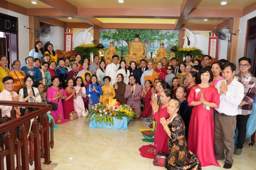 Buổi lễ khép lại trong tiếng niệm Phật trầm hùng, giữa không gian thanh thoát của khói hương và ánh nến lung linh. Cả đạo tràng như lắng lại trong niềm hoan hỷ. Cha mẹ hai bên xúc động khi chứng kiến con cái nên duyên dưới mái chùa – nơi đạo và đời gặp nhau trong ánh sáng của từ bi, trí tuệ.