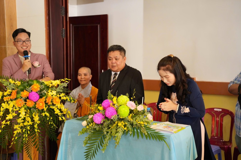 Ni sư Thích Nữ Như Hoa – trụ trì chùa Dược Sư thay mặt Ni chúng bổn tự trao tặng món quà pháp lành và lời chúc phúc chân tình: “Hạnh phúc không đến từ lời thề hứa, mà đến từ sự thực hành chánh niệm, từ lòng bao dung và khiêm hạ trong từng hành xử.” Ni sư nhắn nhủ đôi bạn trẻ luôn giữ tâm đạo, biết sống hiếu nghĩa với cha mẹ hai bên, giữ tròn trách nhiệm làm vợ, làm chồng, và biến mỗi ngày sống cùng nhau thành một ngày tu tập an lạc.