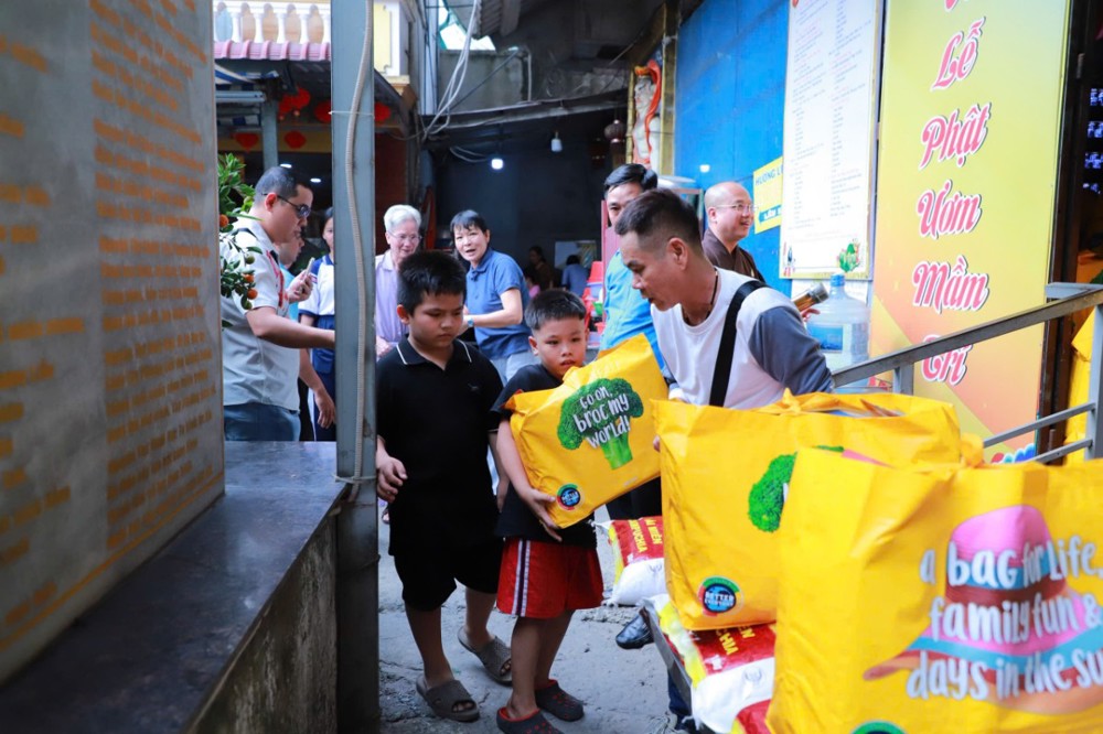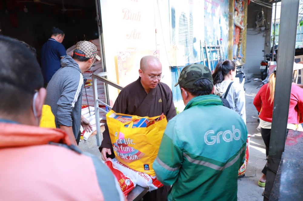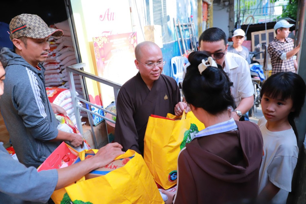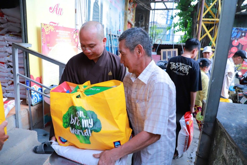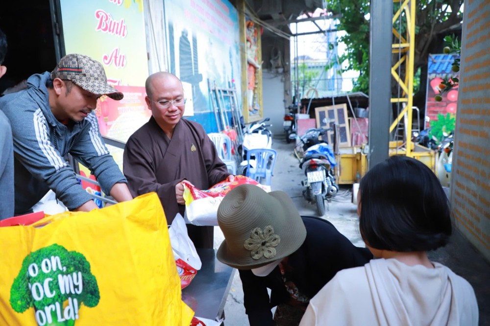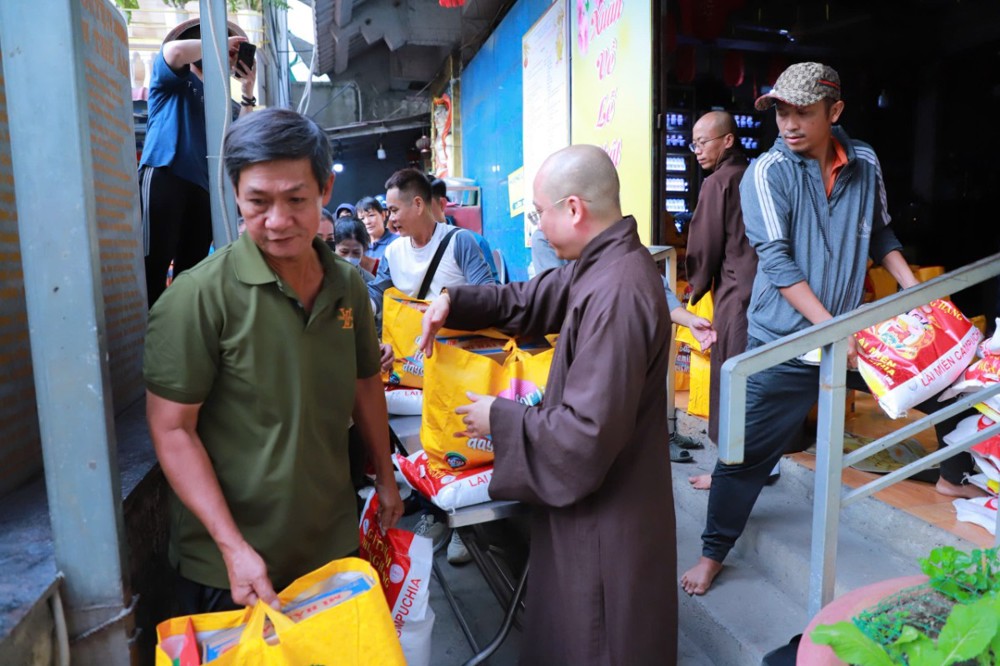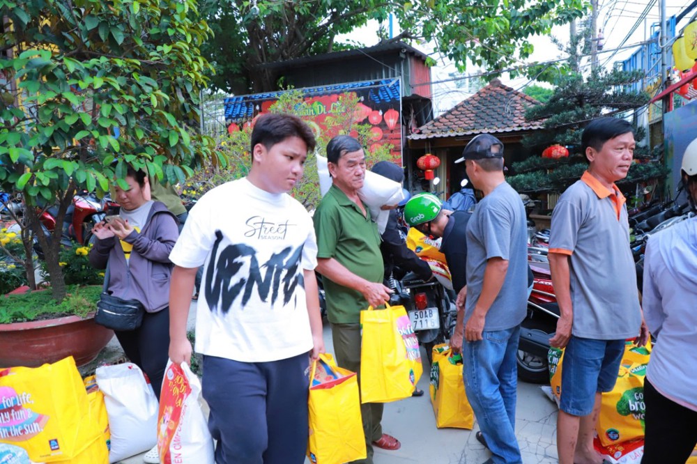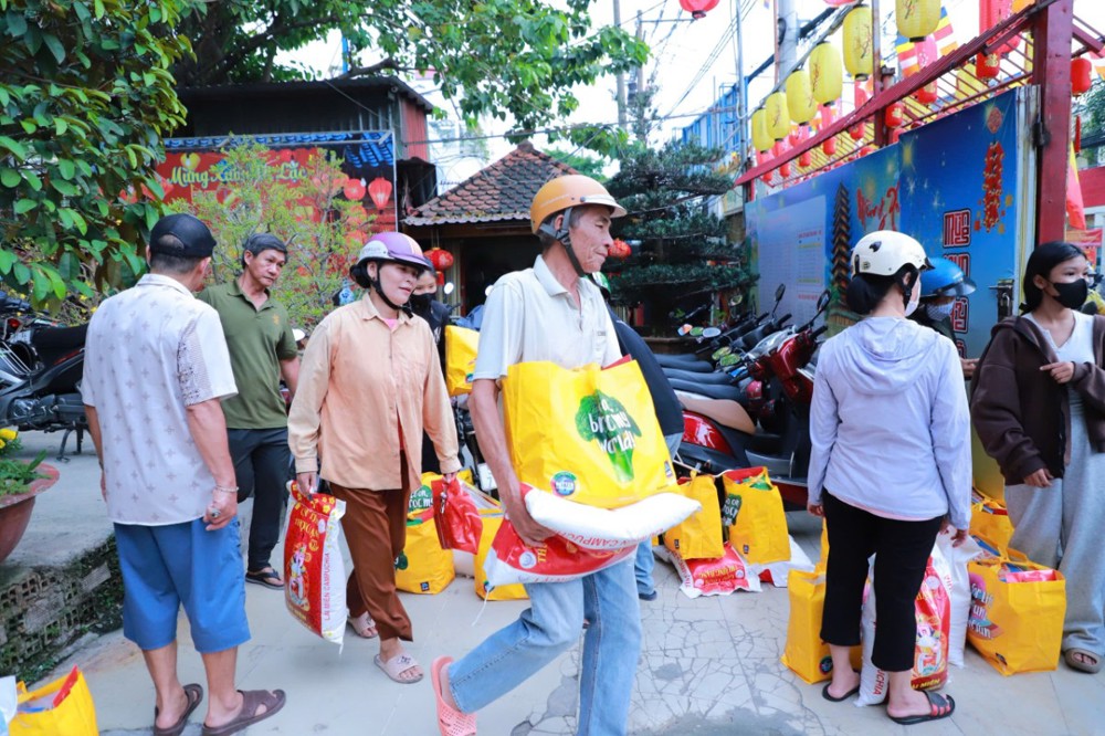 Mỗi phần quà trị giá 450.000 đồng, gồm gạo và các nhu yếu phẩm thiết yếu như mì, dầu ăn, nước ngọt, bột nêm… do chùa vận động quý mạnh thường quân và Phật tử phát tâm ủng hộ, góp phần hỗ trợ bà con chuẩn bị đón Tết cổ truyền trong không khí ấm áp, nghĩa tình.