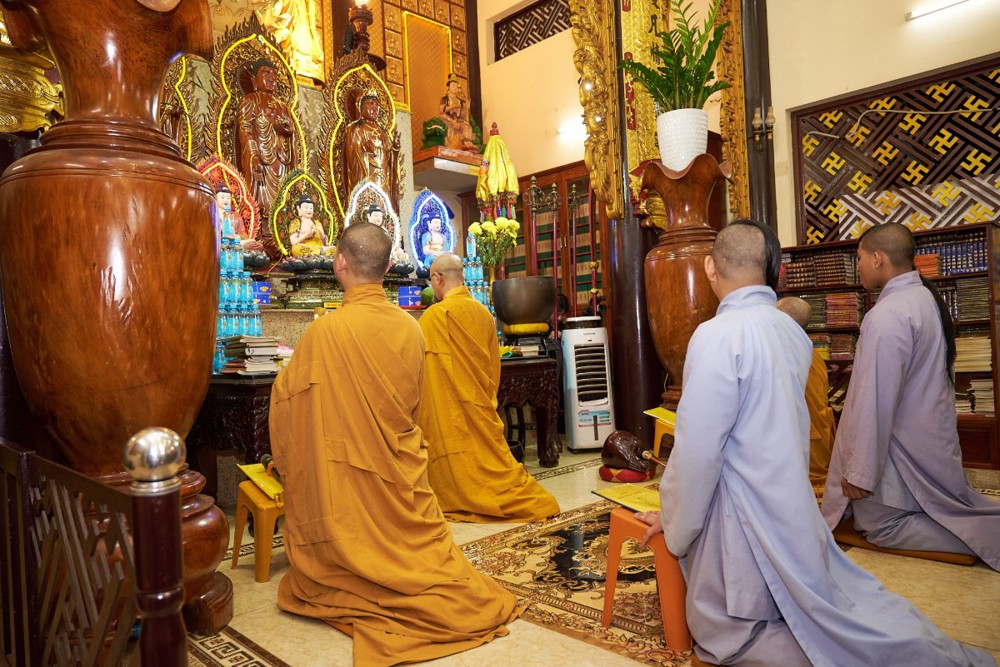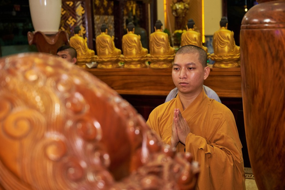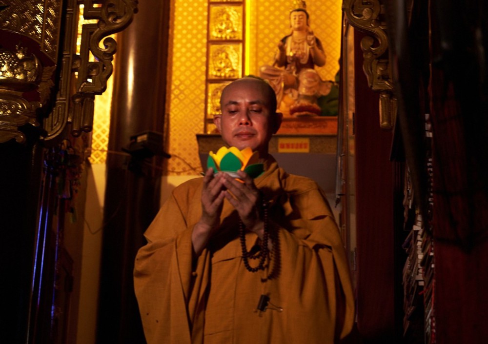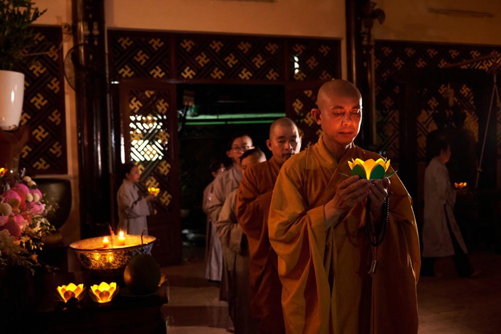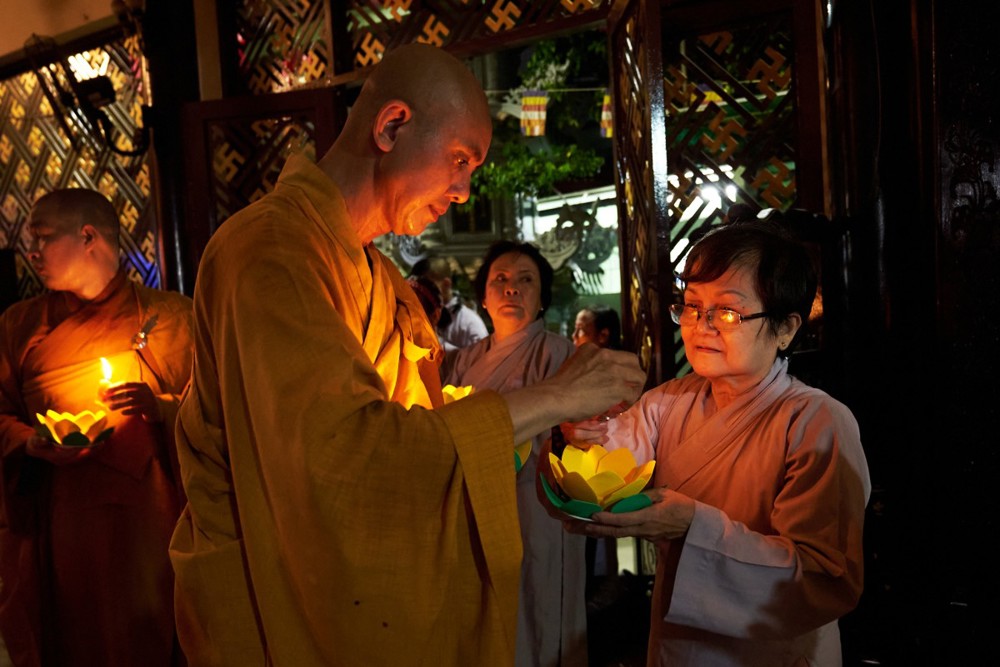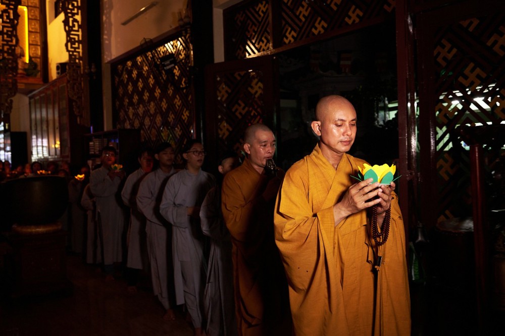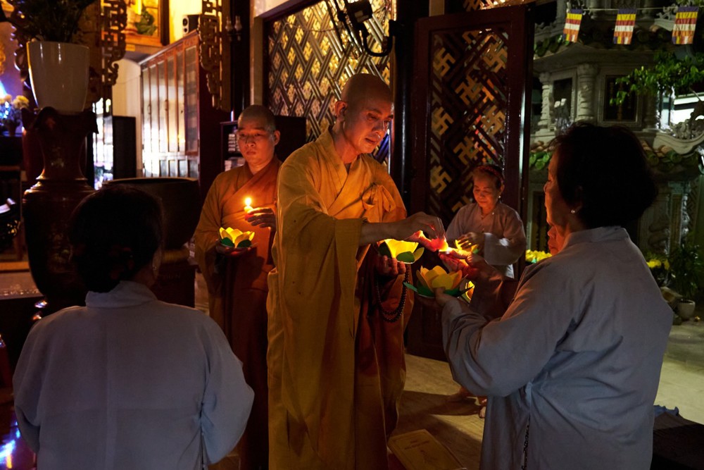 Trong giây phút thiêng liêng, Đại đức Trụ trì đã đón nhận ánh sáng từ bàn Phật và truyền đăng cho chư Tăng cùng Phật tử. Ánh sáng ấy tượng trưng cho mạng mạch của Phật pháp, lan tỏa khắp khuôn viên chùa, soi rọi tâm từ trong mỗi người con Phật.