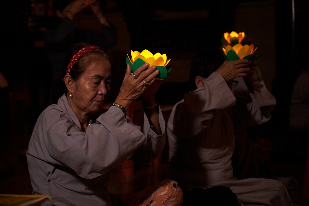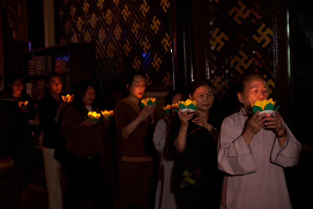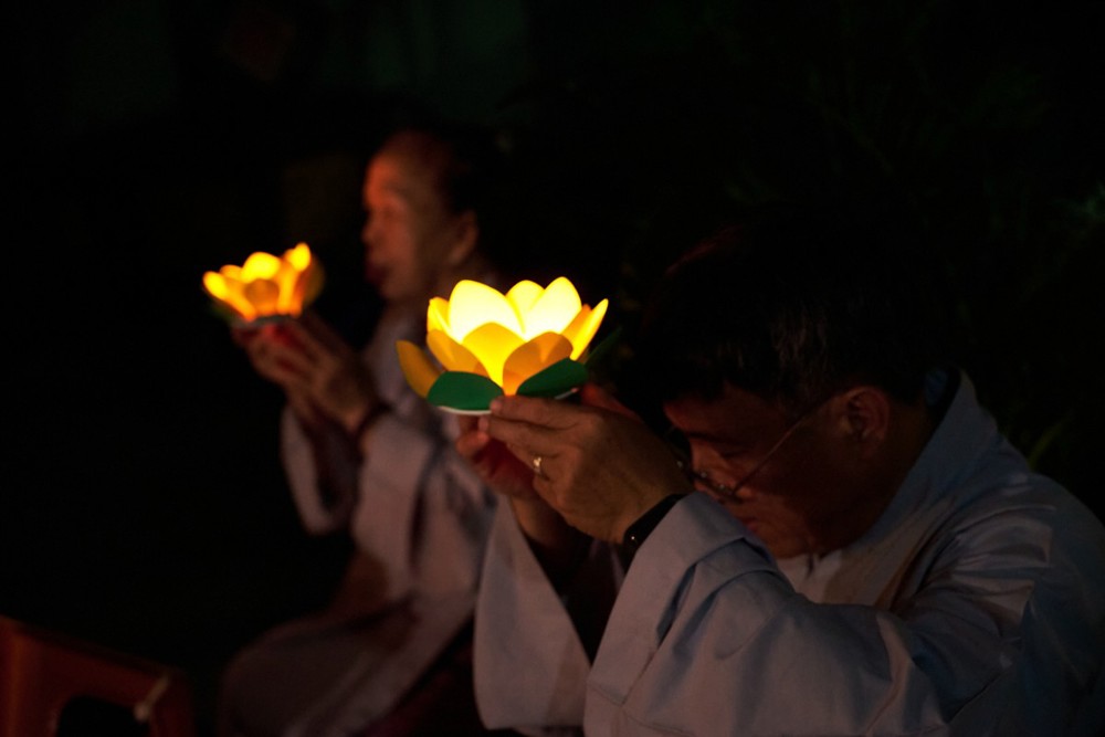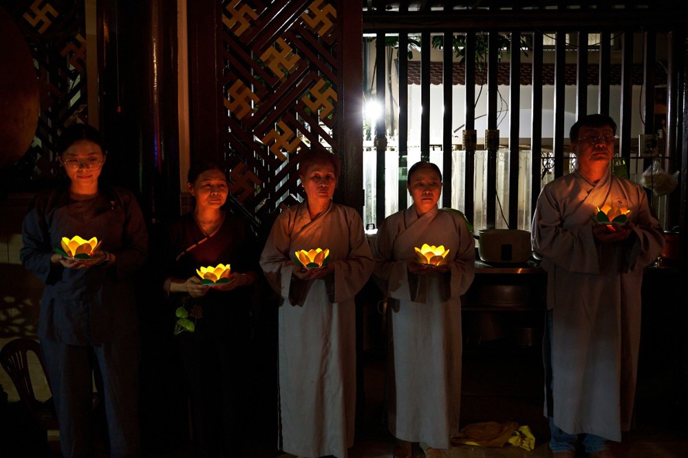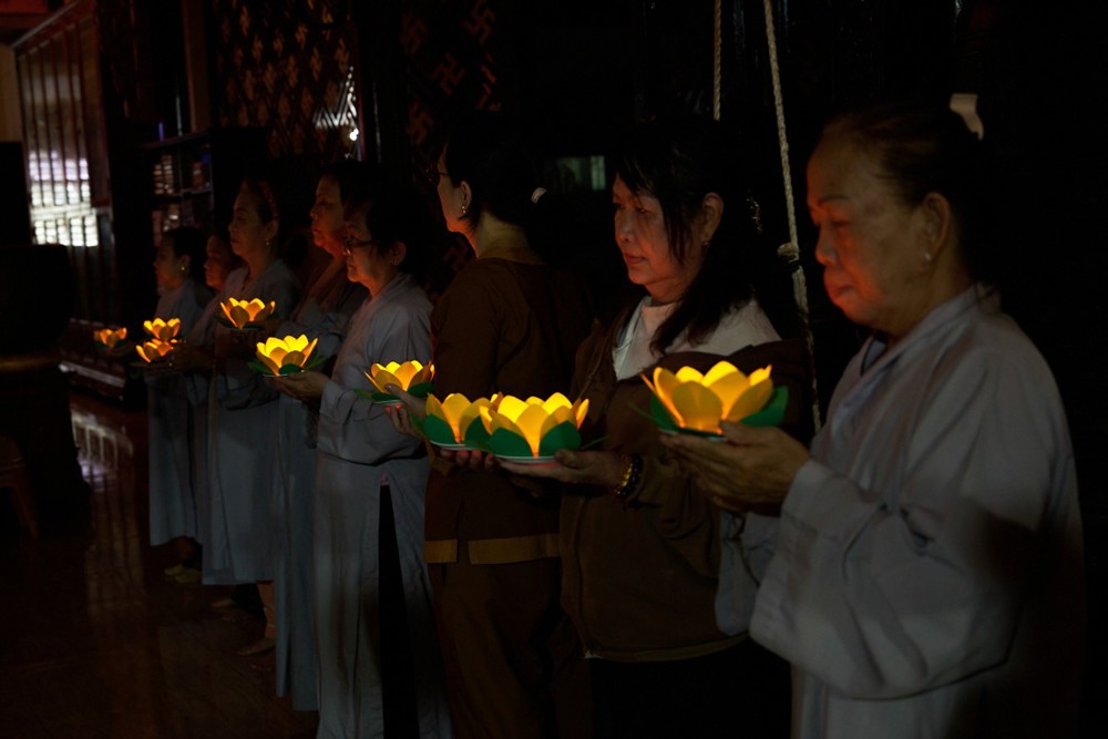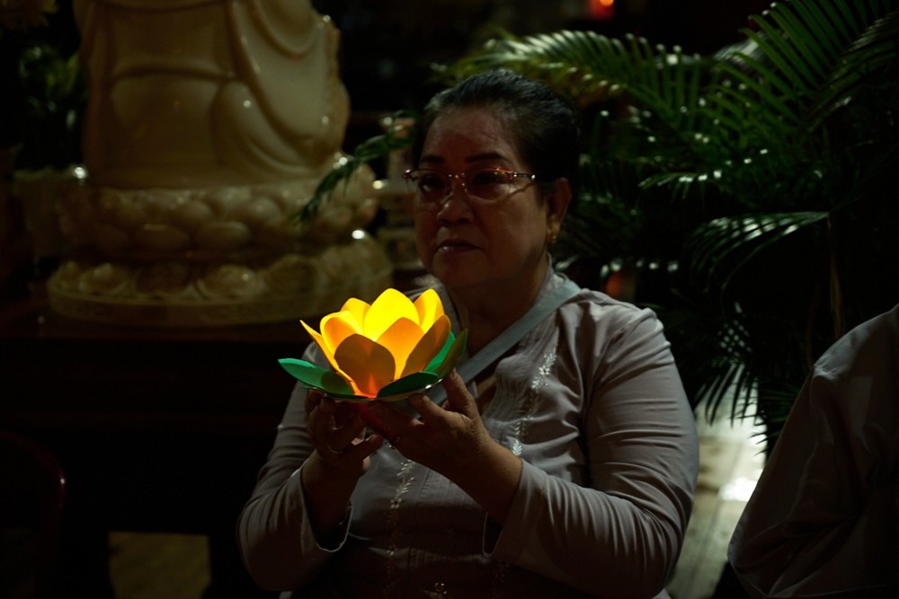 Trong không gian rực sáng ánh nến, hội chúng đồng dâng lời nguyện cầu cho thế giới hòa bình, chúng sinh an lạc, và đặc biệt là cầu nguyện cho đồng bào miền Trung sớm vượt qua thiên tai bão lũ, cuộc sống sớm được hồi sinh. Những ngọn nến lung linh hòa cùng tiếng niệm danh hiệu Bồ Tát Quán Thế Âm đã tạo nên bầu không khí linh thiêng, xúc động và chan chứa tình người.