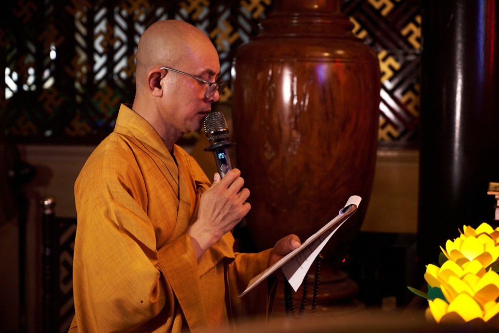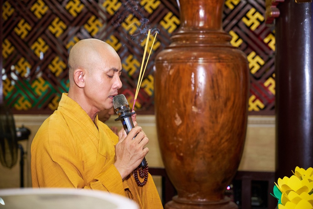 Trong không gian linh thiêng và ấm áp, Đại đức Thích Trí Lực – Trụ trì chùa Giác Tánh đã hướng dẫn đại chúng tụng Kinh Ngũ Bách Danh và trì niệm hồng danh Bồ Tát Quán Thế Âm. Tiếng kinh hòa cùng ánh nến lung linh như dòng suối thiêng thanh lọc tâm hồn, gợi nhắc mỗi người con Phật về hạnh nguyện từ bi và tinh thần cứu khổ của Bồ Tát.