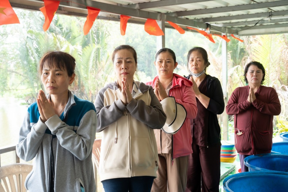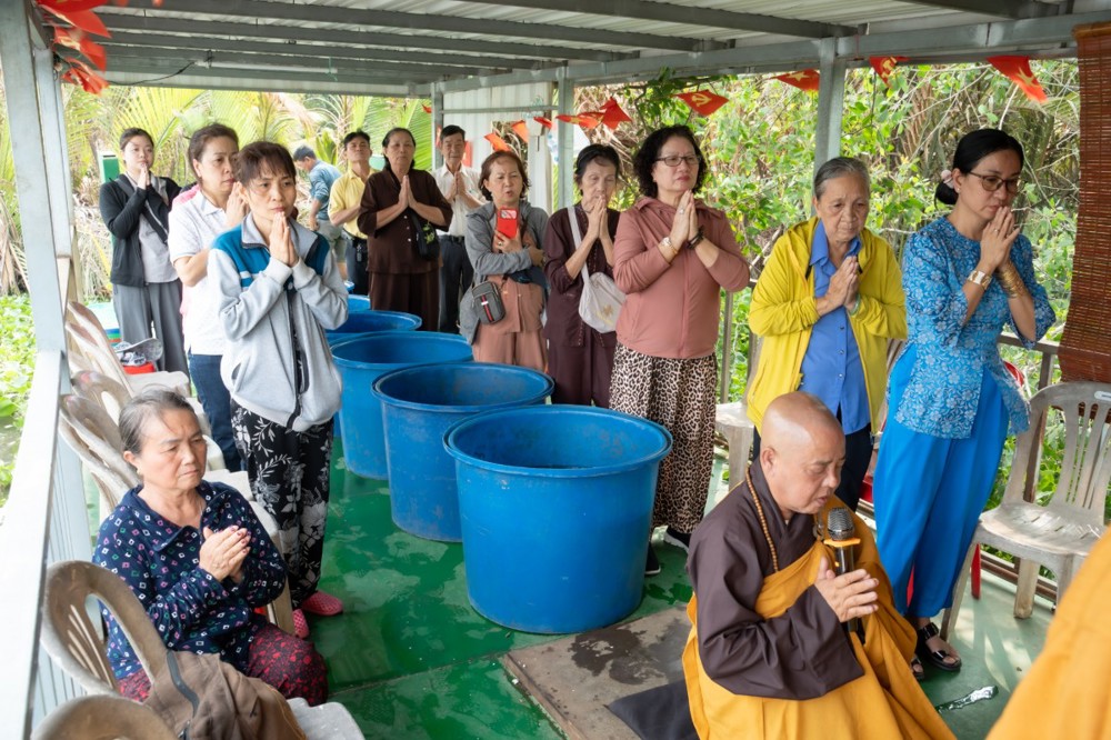 Trước khi tiến hành nghi thức phóng sanh, đại chúng đã thành kính niêm hương bạch Phật, trì tụng kinh văn, thực hiện nghi thức sái tịnh và chú nguyện, hồi hướng công đức đến tất cả chúng sinh. Trong không gian chiều tĩnh lặng, tiếng kinh hòa quyện cùng làn gió nhẹ như đánh thức nơi mỗi người một niềm lắng sâu, quay về với tâm thiện lành vốn có.