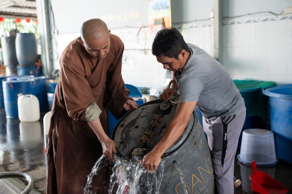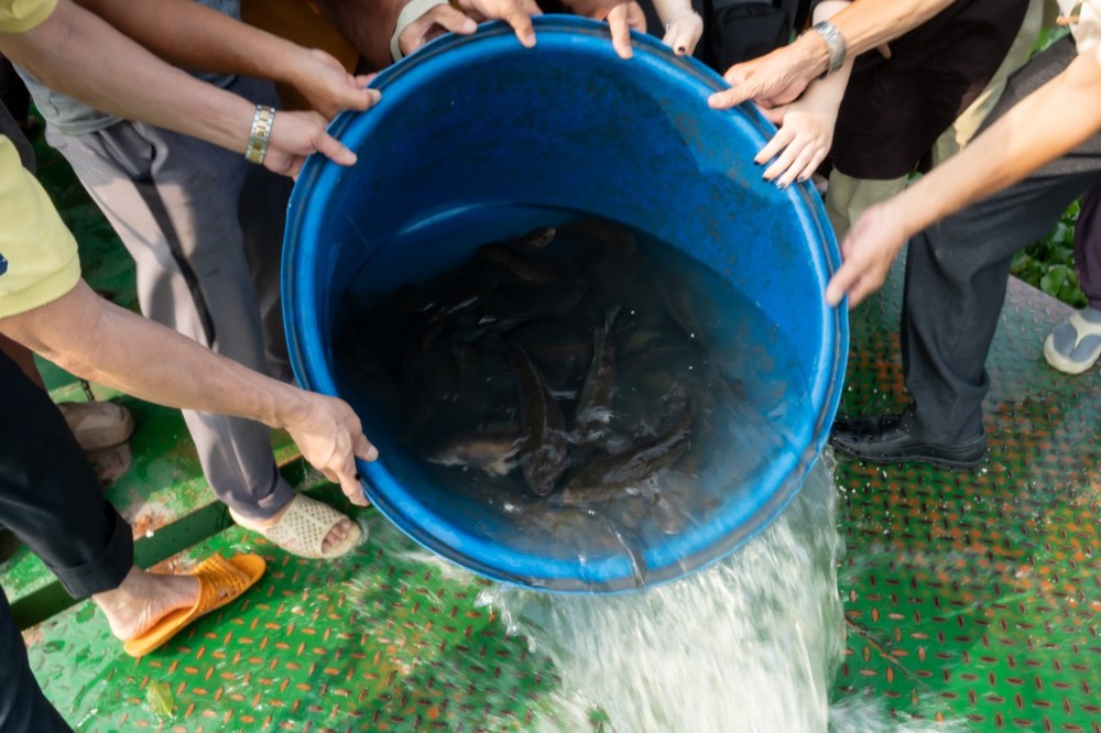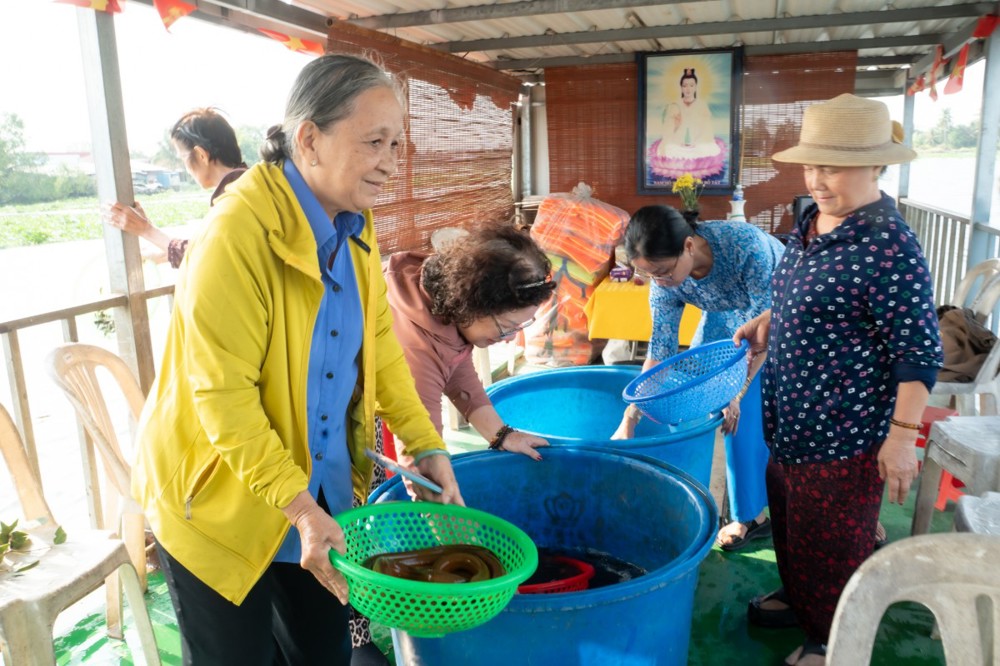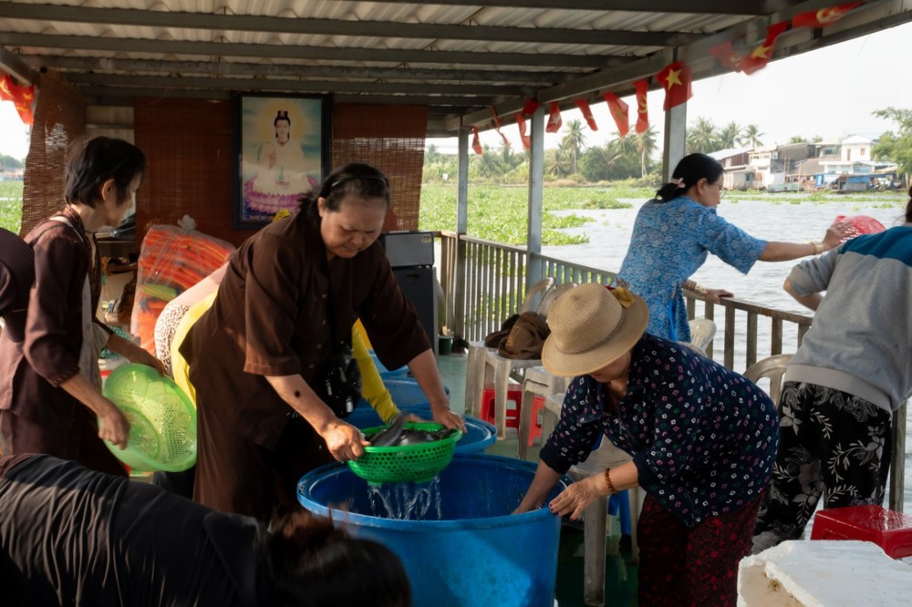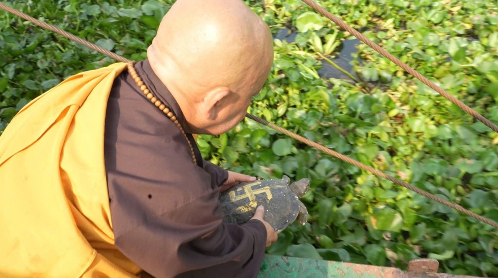 Từng sinh linh được nâng niu trong đôi tay đầy trân trọng, nhẹ nhàng thả về môi trường tự nhiên. Trên dòng nước, những chuyển động nhỏ bé ấy không chỉ là sự trở về của muôn loài, mà còn là biểu tượng cho sự buông xả – buông đi những chấp niệm, những ràng buộc trong chính nội tâm con người.