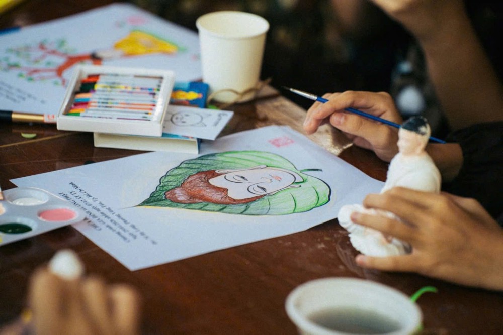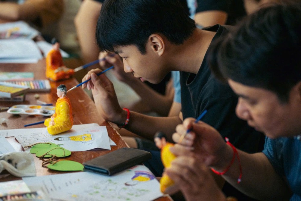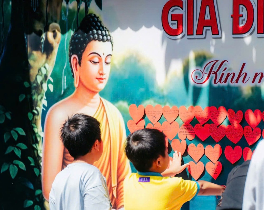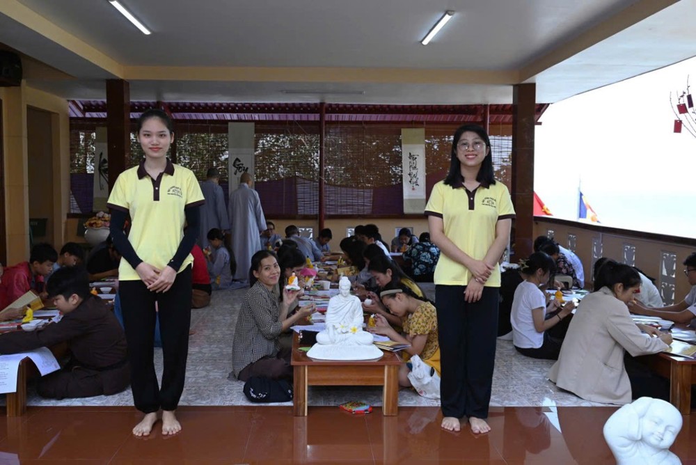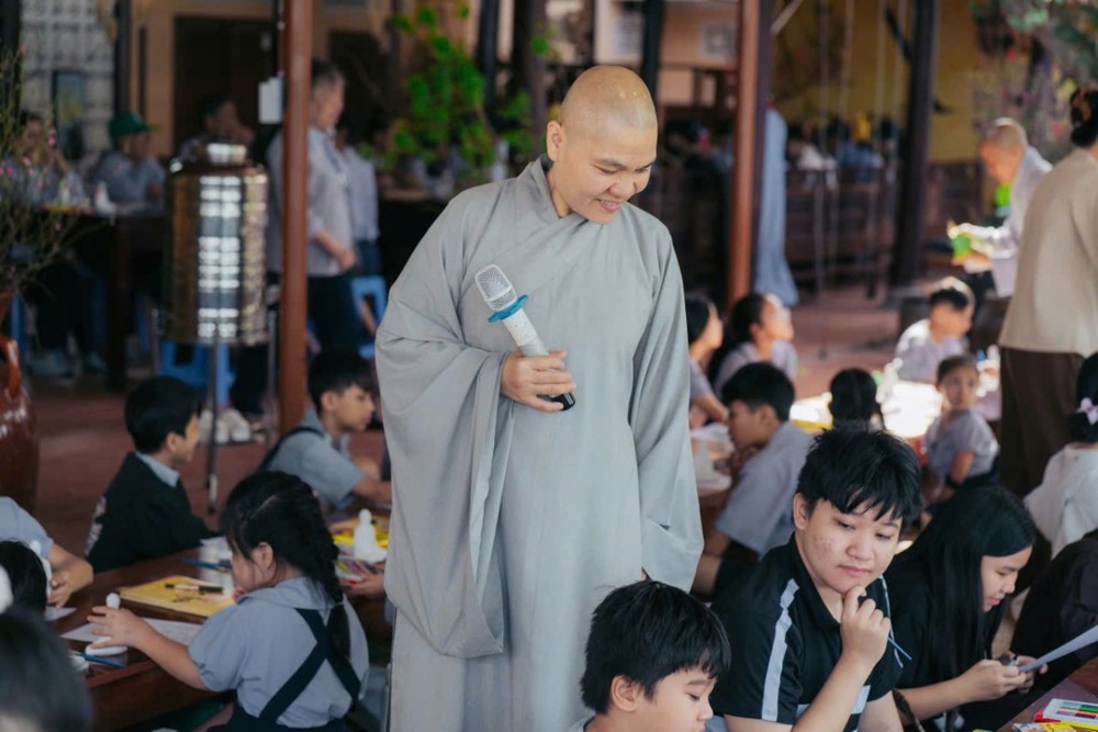 Tiếp đó, các Phật tử và gia đình tham gia nhiều hoạt động ý nghĩa như: tô vẽ hình tượng Đức Phật thành đạo, chép kinh, viết lời ước nguyện. Những hoạt động này không chỉ tạo không gian tu tập tỉnh thức mà còn giúp các gia đình gắn kết trong đời sống tâm linh, gieo trồng hạt giống thiện lành, nuôi dưỡng niềm tin đối với Phật pháp.
