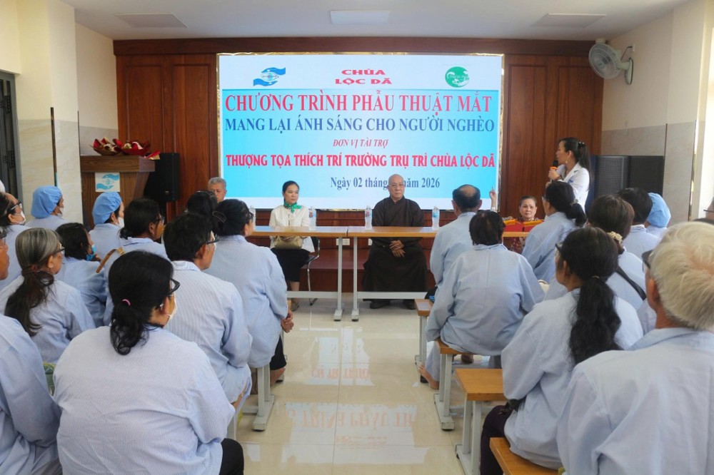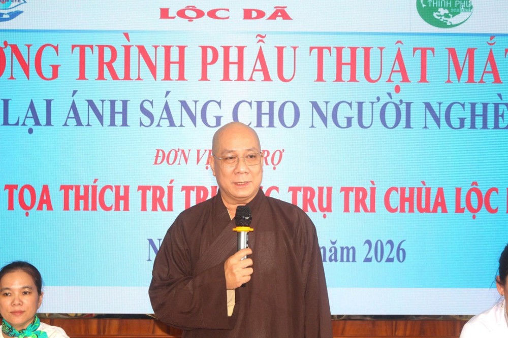 PSO - Ngày 02/2/2026 (nhằm 15 tháng Chạp năm Ất Tỵ), Thượng tọa Thích Trí Trường – Trụ trì chùa Lộc Dã (phường Chánh Hưng, TP.HCM), phối hợp cùng Công ty Thủy sản Thịnh Phú và Bệnh viện Mắt Tây Nam, đã tổ chức chương trình trao lì xì và phẫu thuật mắt miễn phí, mang lại ánh sáng cho bà con bệnh nhân nghèo nhân dịp Xuân Bính Ngọ 2026.