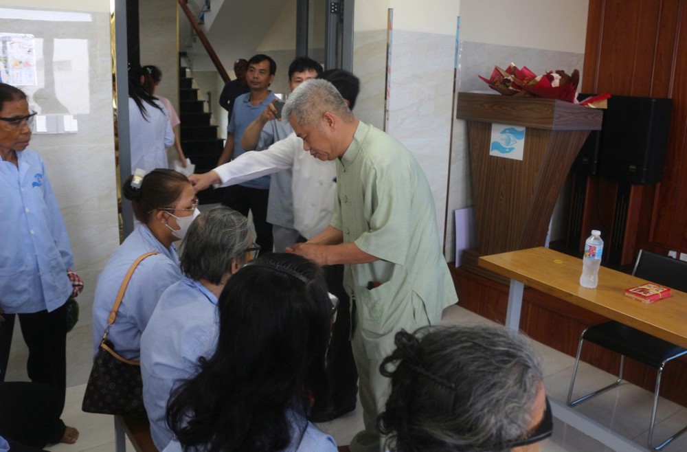 Phát biểu tại buổi lễ, Thượng tọa đã gửi lời chúc Tết đến toàn thể bà con bệnh nhân, đồng thời bày tỏ sự tri ân Cô Thu Ba – Giám đốc Công ty Thủy sản Thịnh Phú, đã đồng hành, hỗ trợ để chương trình được thành tựu viên mãn. Thượng tọa cũng cầu chúc quý bà con cùng gia quyến một năm mới bình an, thân tâm thường lạc, vạn sự cát tường.