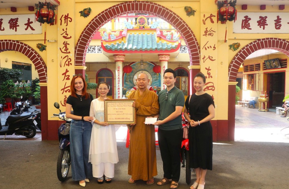Dịp này, bà Âu Mỹ Ly cũng trao tặng chùa Long Hoa 1,5 tấn gạo nhằm phục vụ công tác từ thiện. Tổng kinh phí thực hiện chương trình do gia đình cố ông Đặng Bá Giai tài trợ là 130 triệu đồng.