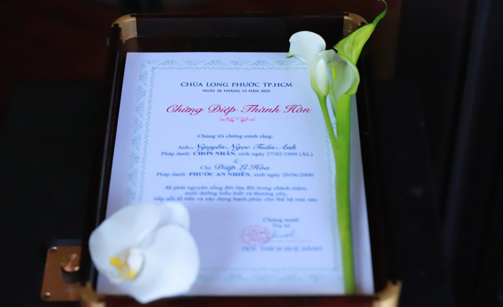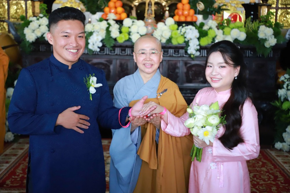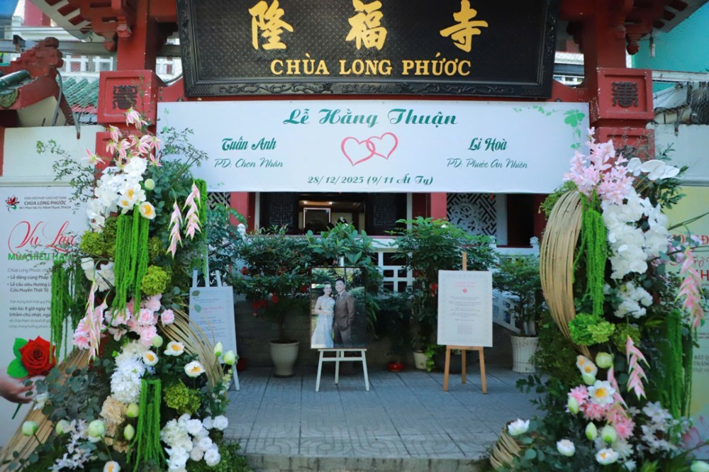 PSO - Sáng ngày 28/12/2025, tại chùa Long Phước (TP.HCM), lễ Hằng Thuận của đôi tân lang Nguyễn Ngọc Tuấn Anh (pháp danh Chơn Nhân) và tân nương Diệp Li Hòa (pháp danh Phước An Nhiên) đã được cử hành trong không khí trang nghiêm, thanh tịnh. Buổi lễ do Ni sư Thích Nữ Huệ Dâng – Trụ trì chùa Long Phước, chứng minh và chủ trì, cùng sự tham dự của chư Tôn đức Ni và quan viên hai họ.