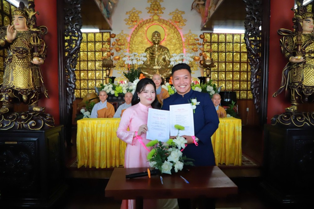 Buổi lễ khép lại trong lời hồi hướng và cầu nguyện an lành, với mong ước đôi Phật tử trẻ sẽ luôn giữ gìn hạnh phúc gia đình trên nền tảng từ bi và trí tuệ Phật giáo.