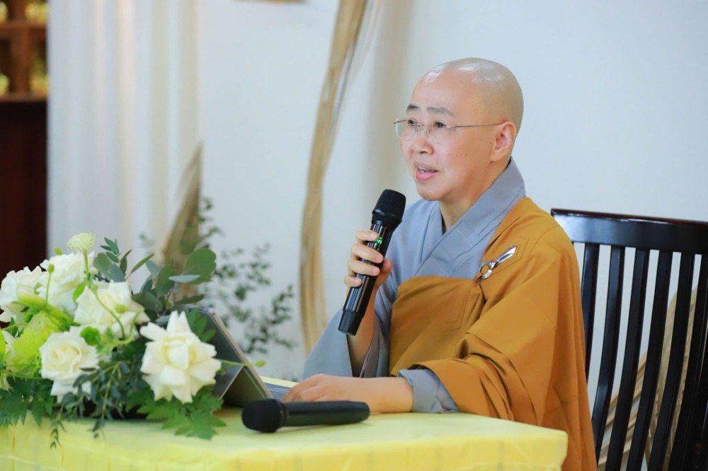 Trong lời khai thị, Ni sư Thích Nữ Huệ Dâng từ bi sách tấn đôi tân hôn quán niệm Tứ trọng ân, ghi nhớ công ơn cha mẹ sinh thành, thầy tổ giáo dưỡng và sự trợ duyên của thân bằng quyến thuộc. Đồng thời, Ni sư giảng giải đạo nghĩa vợ chồng theo Kinh Thiện Sanh, nhấn mạnh các bổn phận trong đời sống hôn nhân, lấy hiểu biết, bao dung và nhẫn nhịn làm nền tảng.