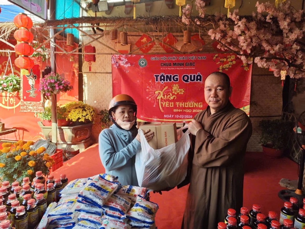 PSO - Sáng ngày 10/02/2026 (nhằm ngày 23 tháng Chạp năm Ất Tỵ), chùa Minh Giác (phường Hiệp Bình, TP.HCM) phối hợp cùng Ủy ban Mặt trận Tổ quốc Việt Nam phường Hiệp Bình tổ chức chương trình trao quà Xuân Bính Ngọ 2026 đến các hộ gia đình có hoàn cảnh khó khăn trên địa bàn, nhân dịp Tết cổ truyền của dân tộc.