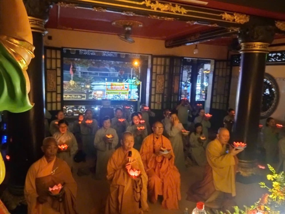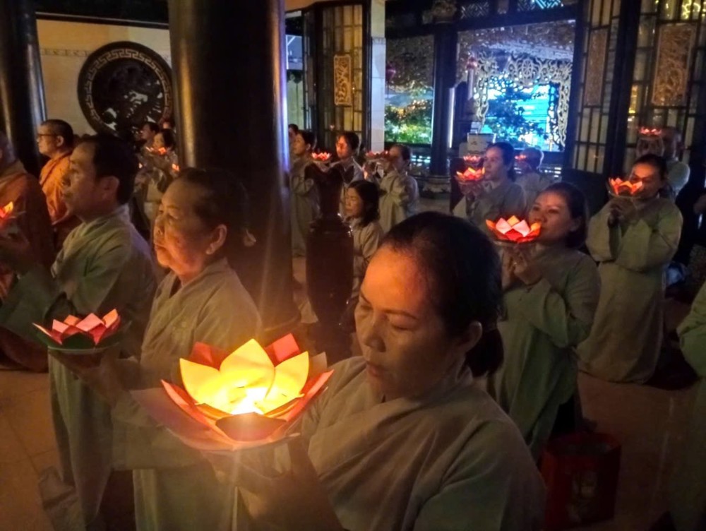 Trong không khí thanh tịnh, chan hòa ánh sáng hoa đăng, đại chúng đồng niệm danh hiệu Đức Quán Thế Âm Bồ Tát với tâm nguyện cầu cho thế giới hòa bình, chúng sinh an lạc, nhân dân an cư lạc nghiệp, mọi nhà no ấm, hạnh phúc.