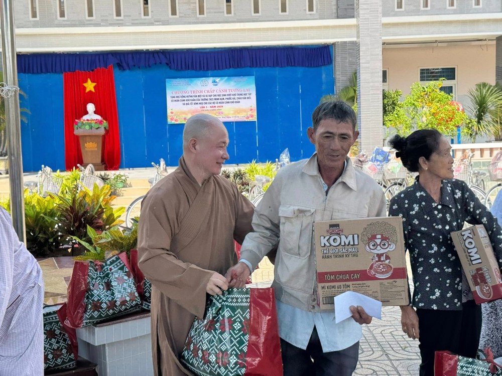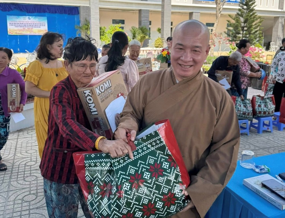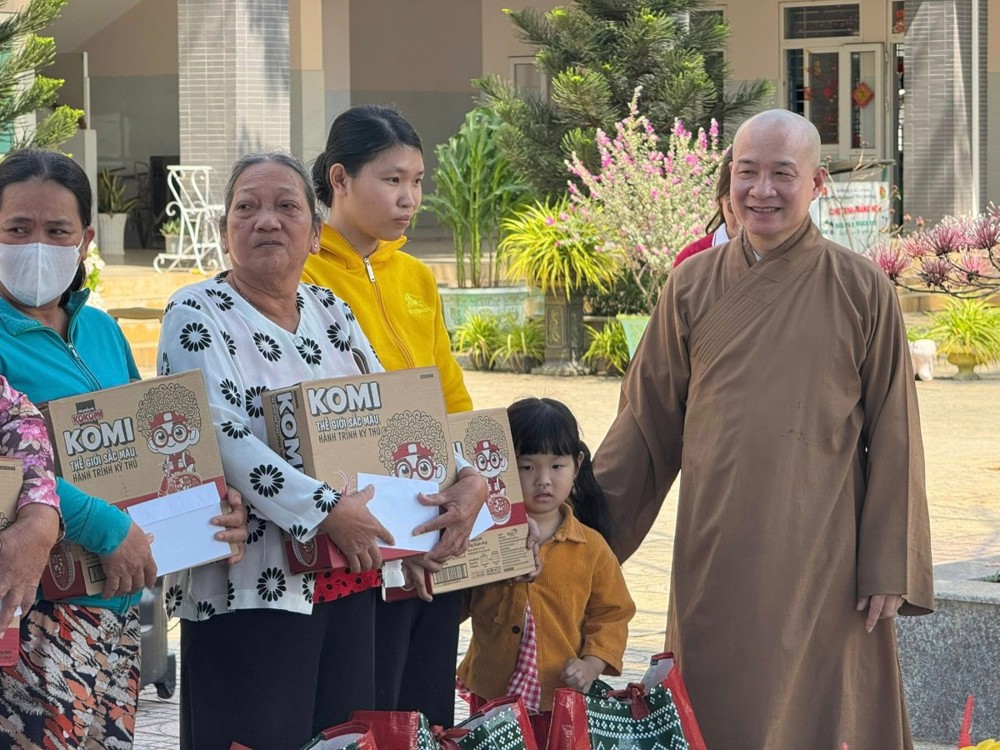 Đặc biệt, Đại đức Thích Trí Huệ còn phát tâm hỗ trợ thêm 10 triệu đồng tiền mặt, trao trực tiếp 200.000 đồng/người cho 50 hộ gia đình nhận quà Tết, thể hiện tinh thần từ bi và sẻ chia trong những ngày xuân về.