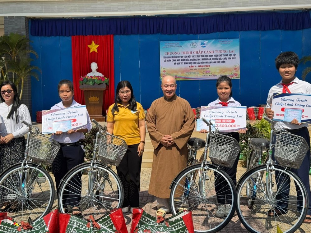 PSO - Nhân dịp Tết cổ truyền Bính Ngọ 2026, ngày 06/02/2026 (nhằm ngày 19 tháng Chạp năm Ất Tỵ), Quỹ Hỗ trợ Giáo dục và Tài năng Thể thao Học đường TP. Hồ Chí Minh phối hợp cùng Hội Liên hiệp Phụ nữ xã Phước Hải tổ chức chương trình “Chắp cánh Tương lai” lần III – năm 2026, trao học bổng, xe đạp và quà Tết cho học sinh nghèo hiếu học và các hộ gia đình có hoàn cảnh khó khăn tại Phước Hải.