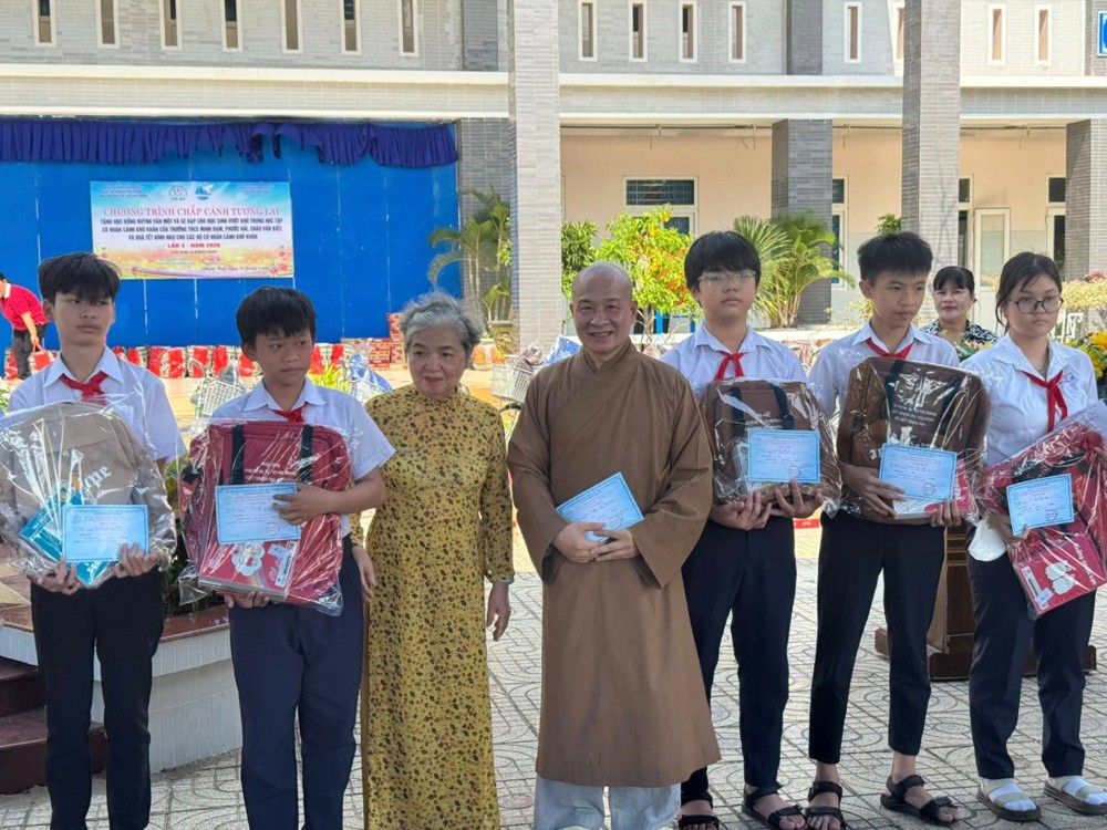Những suất học bổng và phần quà tuy giá trị vật chất không lớn nhưng chứa đựng tấm lòng từ bi và tinh thần đồng hành của chư Tôn đức cùng quý mạnh thường quân. Đây không chỉ là sự hỗ trợ thiết thực cho các em học sinh bước vào học kỳ mới của năm học 2025–2026, mà còn là nguồn động viên tinh thần, tiếp thêm niềm tin để các em vững bước trên con đường học tập, hướng đến tương lai trở thành người hữu ích cho gia đình và xã hội.