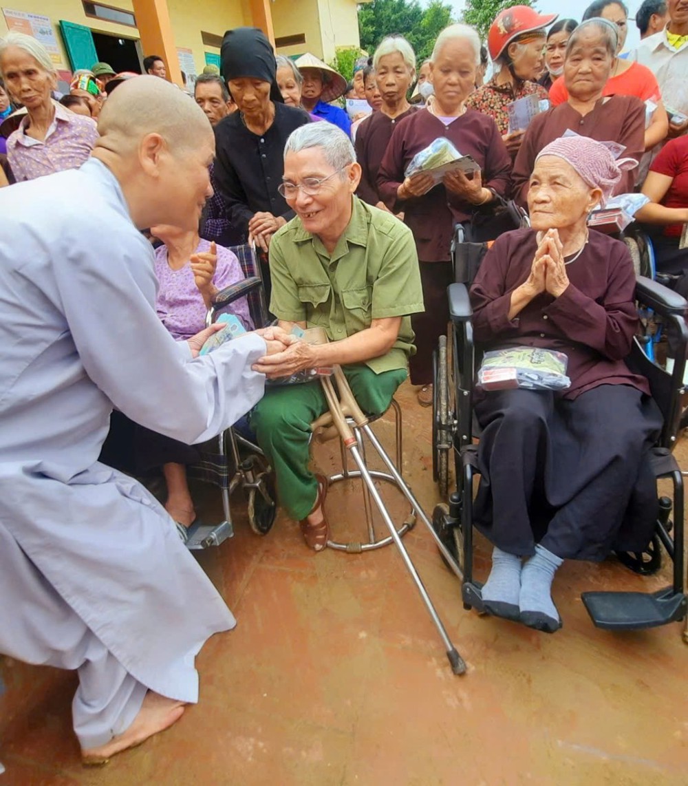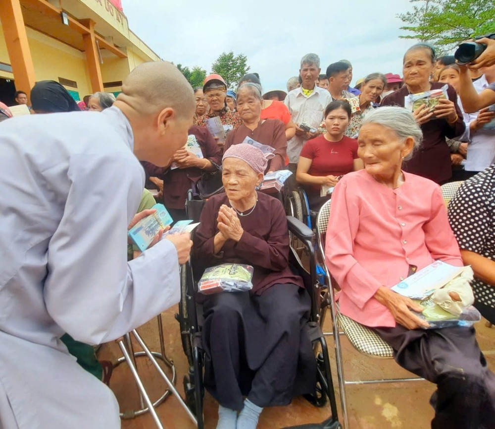 Nhiều bà con xúc động rơi nước mắt khi nhận được sự quan tâm tận tình từ Ni trưởng. Những lời động viên nhẹ nhàng nhưng sâu sắc đã giúp xoa dịu phần nào nỗi đau mất mát, tiếp thêm nghị lực để bà con vượt qua thử thách, ổn định cuộc sống.