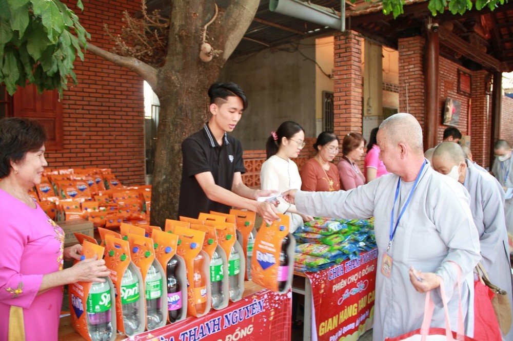 Tham dự phiên chợ có: Đại đức Thích Quảng An – Trụ trì chùa Thanh Nguyên; Đại đức Thích Minh Sơn – Tăng chúng chùa Huệ Nghiêm (phường An Lạc); ông Châu Thành Trung – Phó Chủ tịch Ủy ban MTTQ phường Phú Mỹ, cùng đông đảo quý Phật tử và bà con nhân dân đến nhận quà.