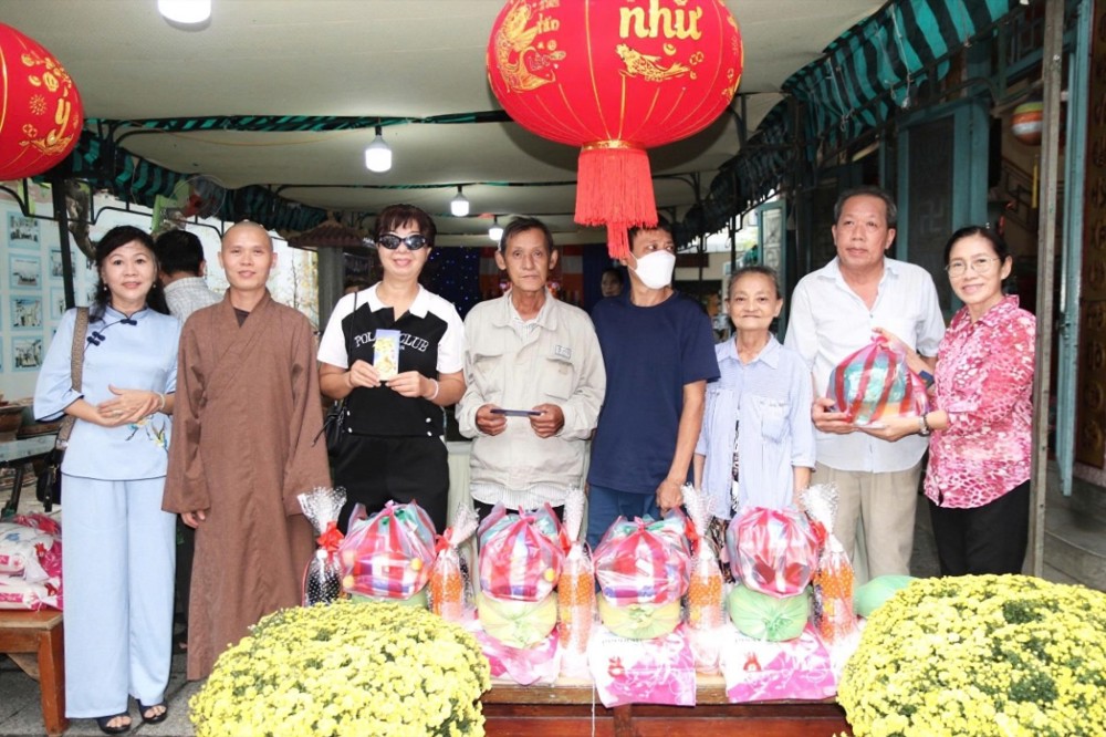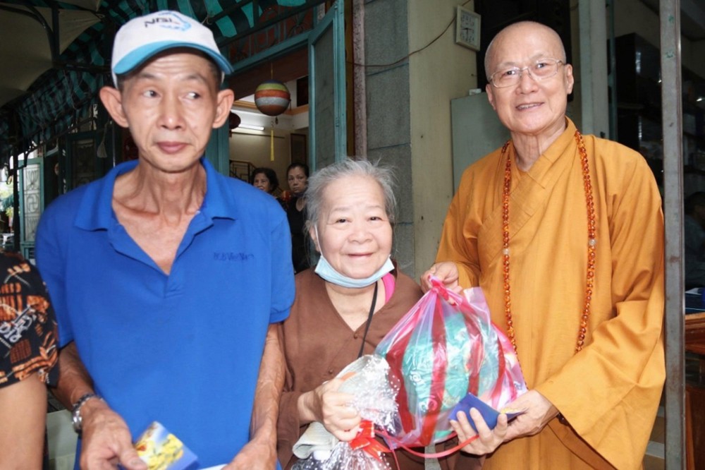 Tham dự và chứng minh buổi trao quà có sự hiện diện của Hòa thượng Thích Chơn Không – Trưởng ban Hướng dẫn Phật tử TP.HCM, Trụ trì chùa Thiên Tôn; Thượng tọa Thích Trung San – Giảng viên Học viện Phật giáo TP.HCM, Giáo thọ chùa Thiên Tôn.