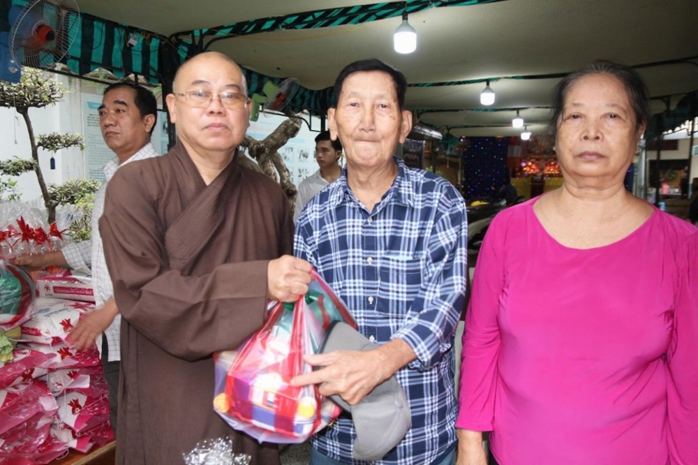 Tết không chỉ là thời khắc đoàn tụ, sum họp bên gia đình mà còn là dịp để sẻ chia yêu thương. Trên tinh thần tương thân tương ái và theo chủ trương của chính quyền địa phương, chùa Thiên Tôn đã trao tặng 120 phần quà cho bà con có hoàn cảnh khó khăn và một số Phật tử phát tâm công quả thường xuyên tại chùa. Mỗi phần quà trị giá 554.000 đồng, gồm: 15 kg gạo, nước ngọt, bánh mứt, mì gói, nước tương và bao lì xì tiền mặt.