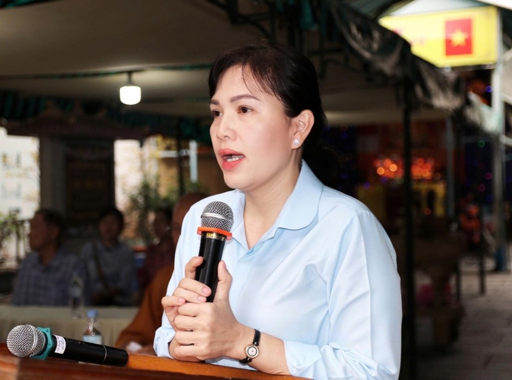 Tiếp lời, bà Nguyễn Thị Ánh Loan đã gửi lời tri ân đến Hòa thượng Thích Chơn Không cùng chư Tôn đức, quý vị mạnh thường quân luôn đồng hành cùng chính quyền địa phương, quan tâm chăm lo đời sống bà con nghèo trên địa bàn; đồng thời kính chúc chư Tôn đức và quý vị mạnh thường quân sức khỏe, vạn sự như ý.