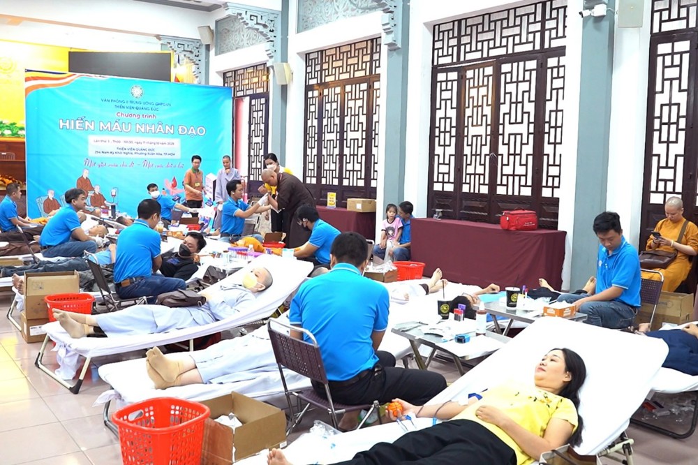 PSO - Sáng ngày 11/10/2025, tại Văn phòng 2 Trung ương Giáo hội Phật giáo Việt Nam – Thiền viện Quảng Đức (P. Xuân Hoà, TP. Hồ Chí Minh), một sự kiện có ý nghĩa nhân văn sâu sắc đã lần đầu tiên được tổ chức: Chương trình "Hiến máu cứu người – Hành đạo Bồ-tát". Sự kiện đã thu hút đông đảo chư Tôn đức Tăng Ni, Phật tử và thiện hữu tri thức tham gia, thể hiện tinh thần từ bi, cứu khổ ban vui.