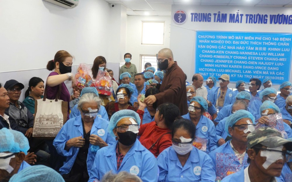 PSO - Ngày 16/10, Hòa thượng Thích Huệ Công – Phó Ban Trị sự GHPGVN TP.HCM, Trưởng Ban đại diện Phật giáo người Hoa TP.HCM, Trụ trì chùa Long Hoa (P. Phú Định, TP.HCM), cùng Hòa thượng Thích Chơn Tịnh, Trụ trì chùa Thường Quang (P. Phú Định), Đại đức Thích Thông Chấn – Ủy viên Ban đại diện Phật giáo người Hoa TP, quý mạnh thường quân, Phật tử từ Hoa Kỳ và Phật tử chùa Long Hoa đã cùng chung tay tài trợ chương trình mổ mắt miễn phí và trao quà cho bà con có hoàn cảnh khó khăn, mắc bệnh về mắt.