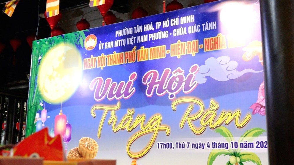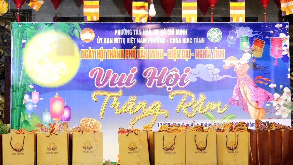 Nhằm quan tâm, chăm lo cho các em thiếu nhi vào dịp Tết Trung Thu trên địa bàn, tối ngày 04/10/2025, Chùa Giác Tánh phối hợp cùng Uỷ ban MTTQ Việt Nam phường Tân Hòa (TP.HCM) tổ chức Chương trình “Vui hội Trăng rằm” năm 2025 và trao gần 600 phần quà cho các em thiếu nhi, Phật tử nhí tại địa phương.