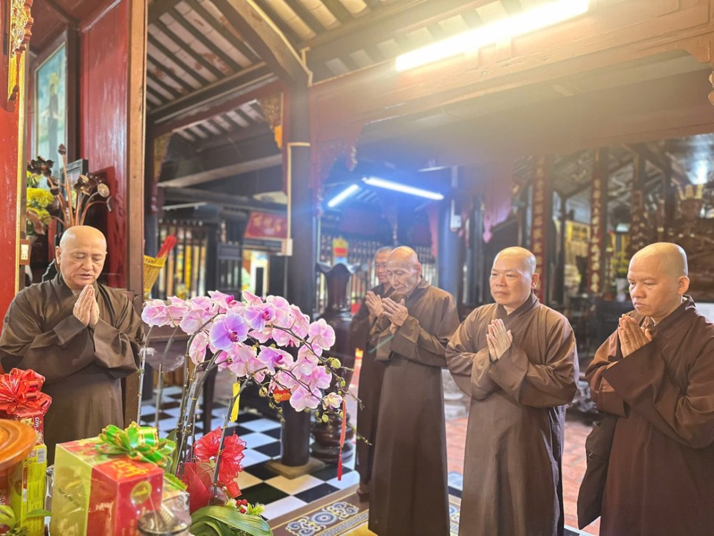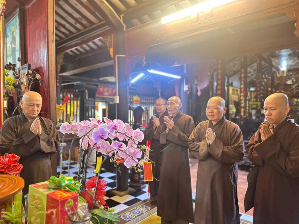 Đoàn do Thượng tọa Thích Chơn Phát - Ủy viên HĐTS, Phó ban Trị sự kiêm Phó ban Thường trực Ban Giáo dục Phật giáo TP.Hồ Chí Minh làm Trưởng đoàn; TT. Thích Thiện Hỷ - Ủy viên Ban Trị sự GHPGVN thành phố; cùng chư Tôn đức trụ trì các tự viện thuộc phường Bình Hoà, Lái Thiêu đồng tháp tùng đến thăm, chúc mừng Xuân Bính Ngọ năm 2026.