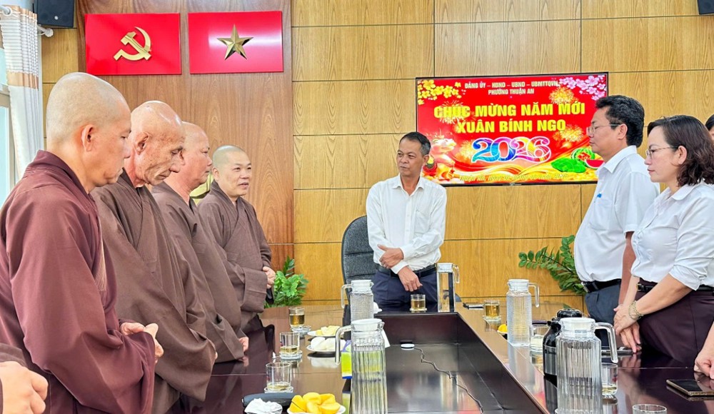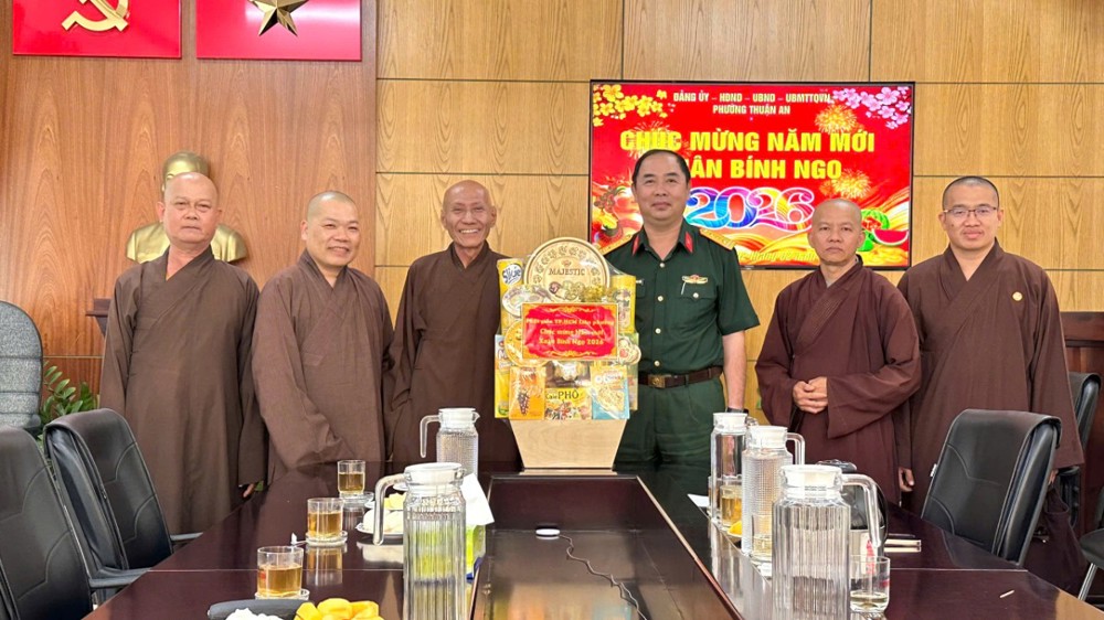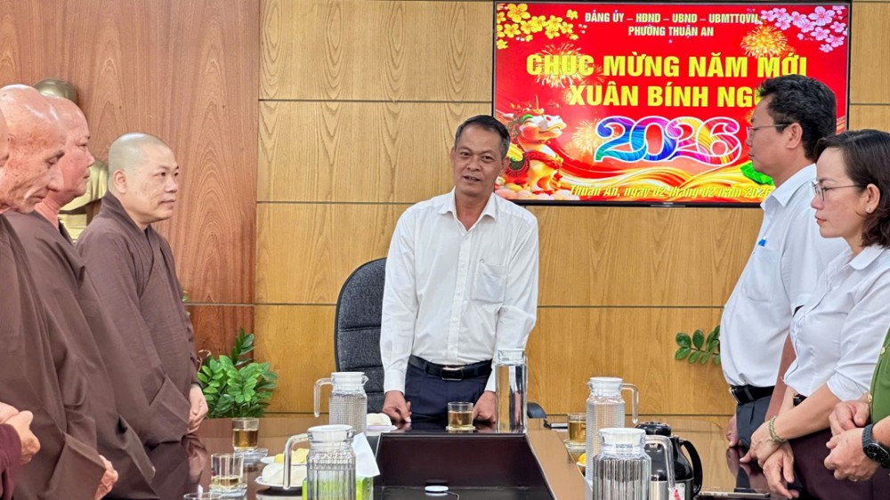 PSO - Bên thềm Xuân Bính Ngọ, đại diện Phật giáo Liên phường Thuận An, Bình Hoà, Lái Thiêu, An Phú (TP.HCM), đã tổ chức chuyến thăm, chúc Tết lãnh đạo chính quyền phường Thuận An: Đảng ủy, HĐND, UBND, Ủy ban MTTQ, Công an, Ban Chỉ huy Quân sự vào chiều ngày 02/02/2026.