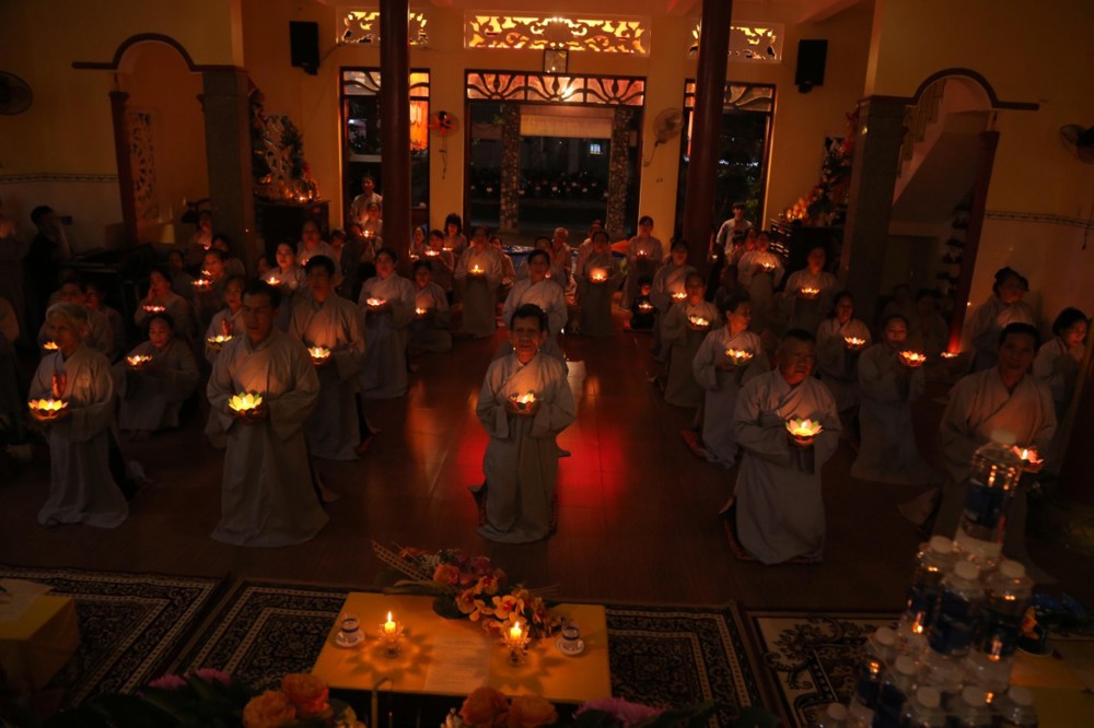 Trong ánh sáng lung linh của hàng trăm hoa đăng được truyền trao, đại chúng đã cùng nhau tụng kinh, niệm Phật, lắng nghe pháp thoại và phát nguyện tu học theo hạnh nguyện từ bi – trí tuệ của Đức Phật A-di-đà.