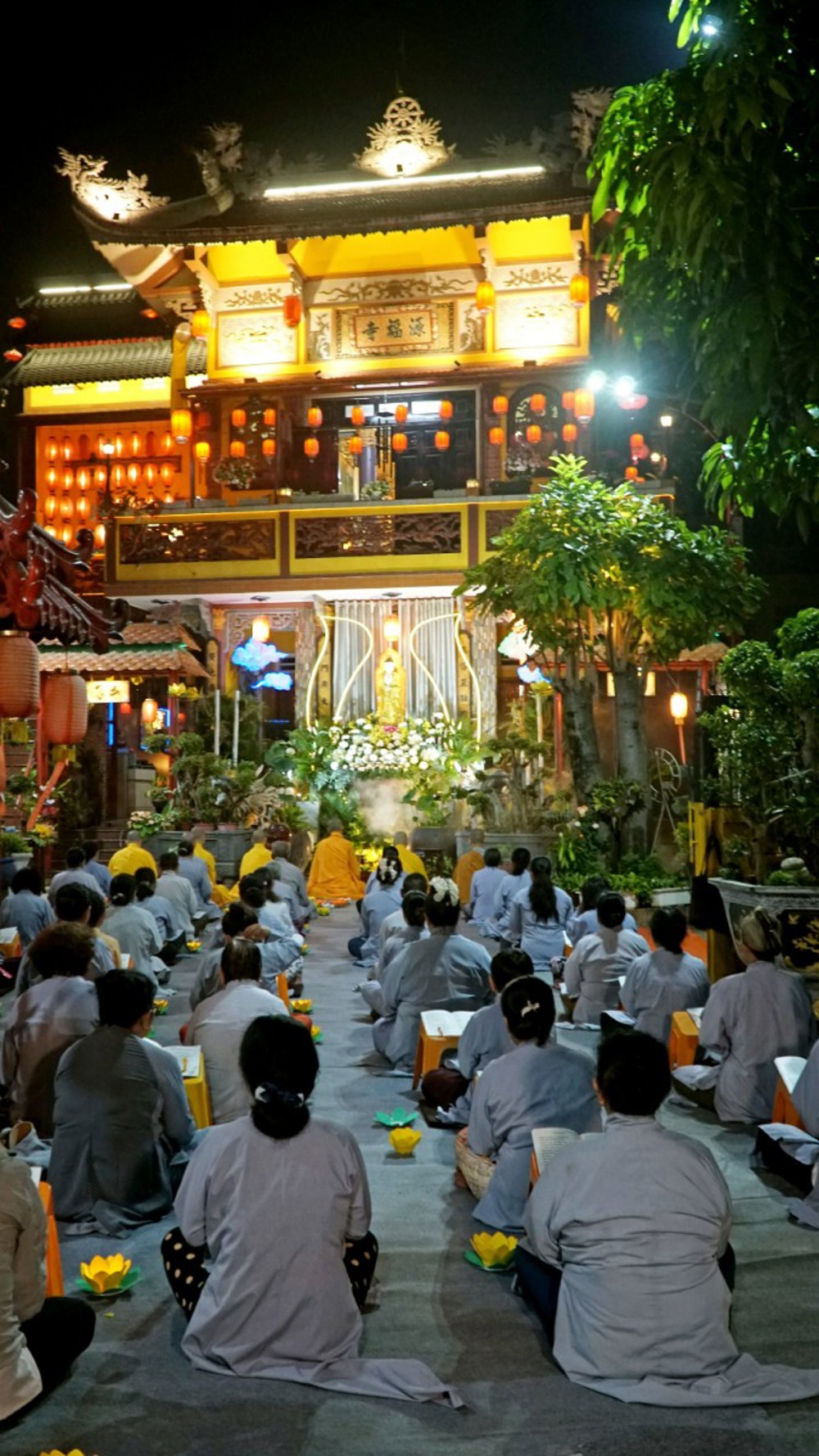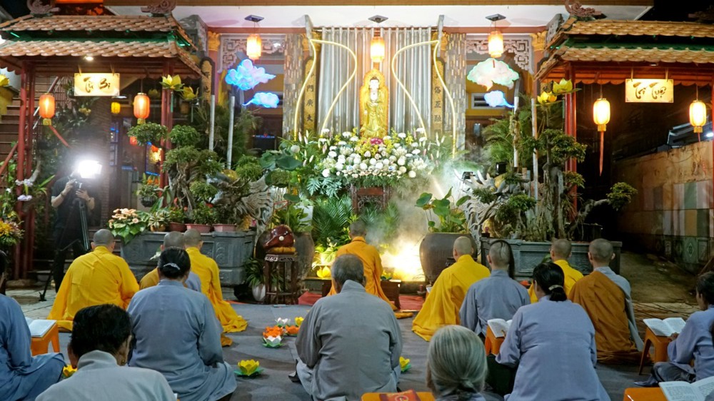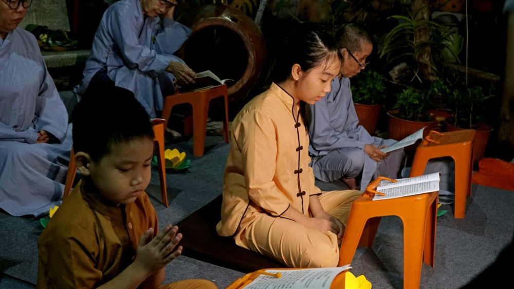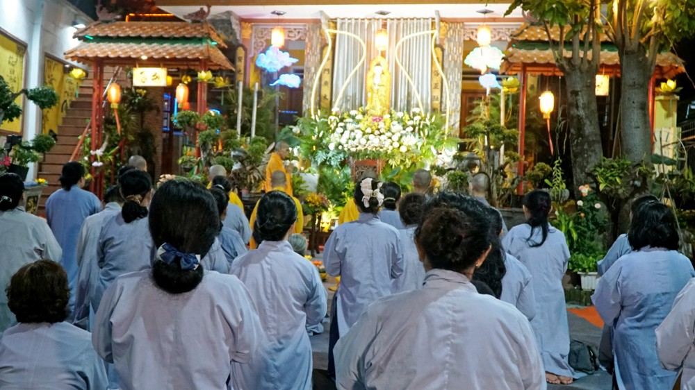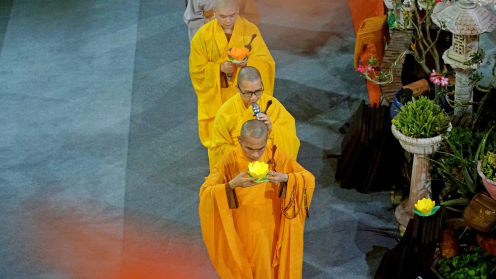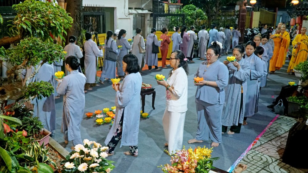 Trong không khí thiêng liêng của đêm lễ, ánh sáng hoa đăng được thắp lên đồng loạt, lung linh soi rọi cả không gian đạo tràng. Ánh sáng ấy như đưa con người trở về với tự tánh hiền lương vốn có, khơi dậy chất liệu từ bi và trí tuệ, giúp mỗi người lắng dịu tâm hồn, vơi đi những não phiền của thế gian.