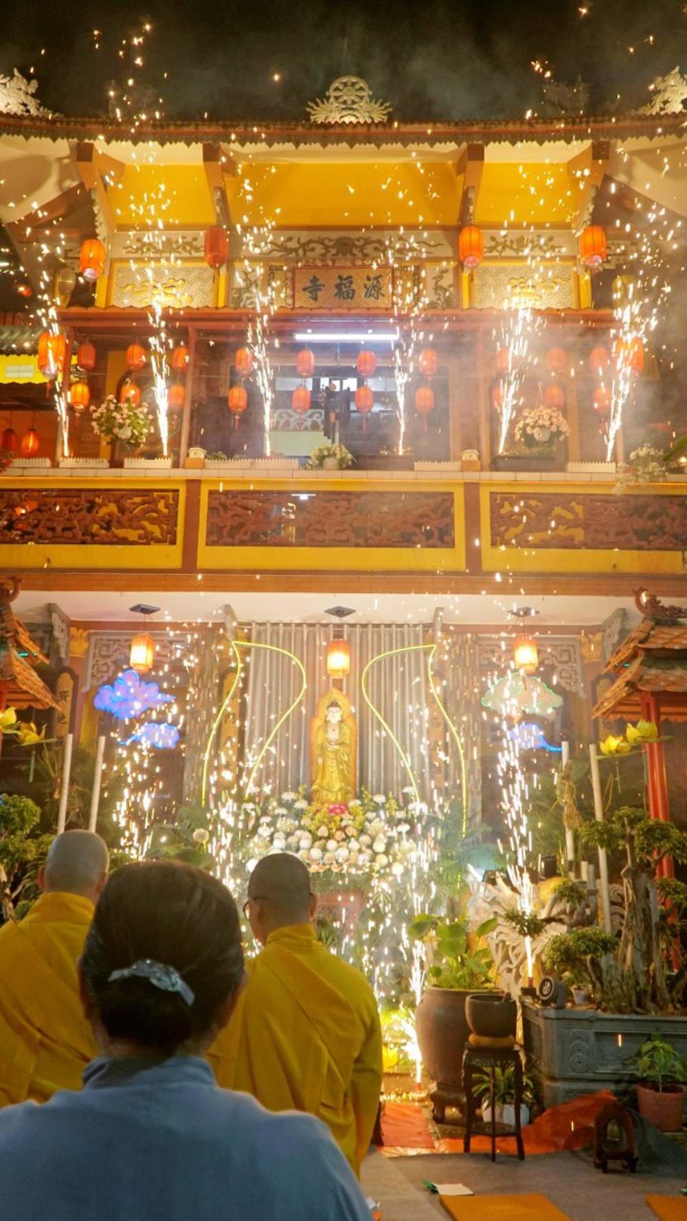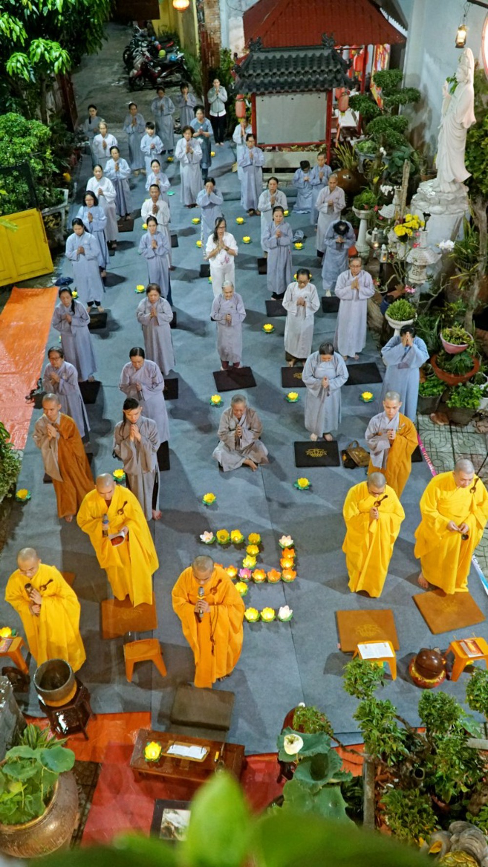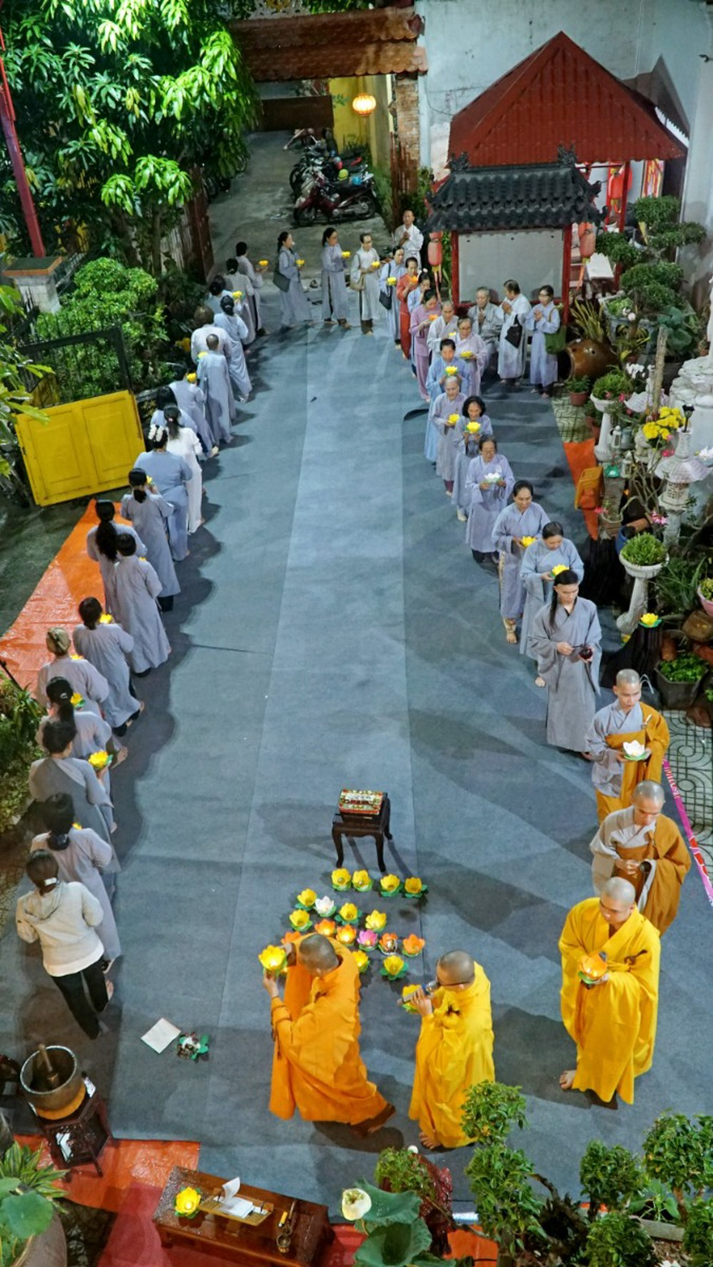 Trong không khí thiêng liêng của đêm lễ, ánh sáng hoa đăng được thắp lên đồng loạt, lung linh soi rọi cả không gian đạo tràng. Ánh sáng ấy như đưa con người trở về với tự tánh hiền lương vốn có, khơi dậy chất liệu từ bi và trí tuệ, giúp mỗi người lắng dịu tâm hồn, vơi đi những não phiền của thế gian.