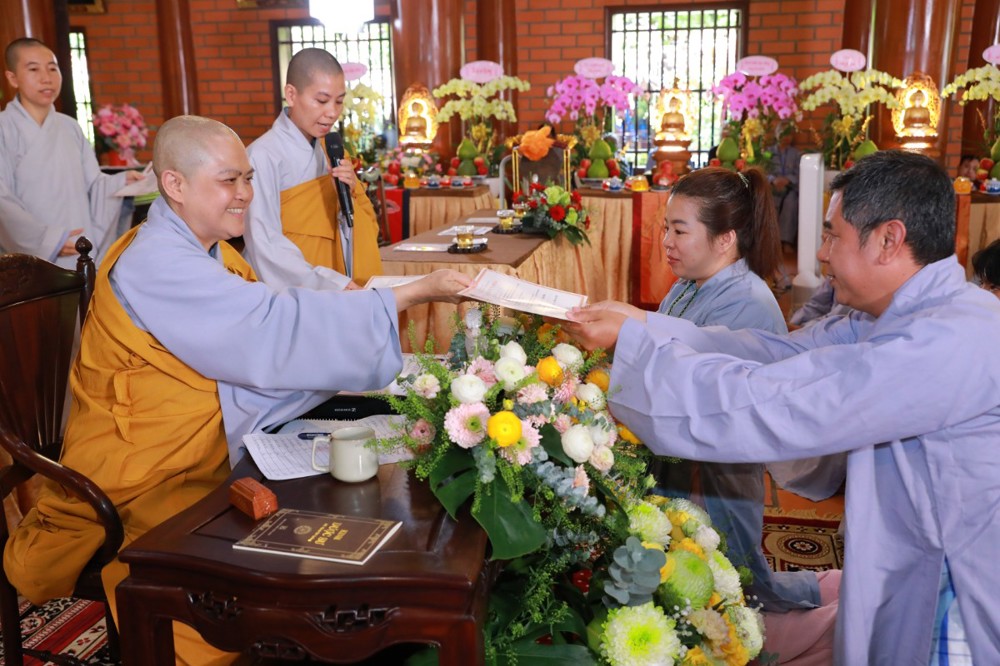 Trong không khí trang nghiêm, thanh tịnh, quý Phật tử đã đồng thanh phát nguyện thọ nhận tam quy, ngũ giới, làm các điều lành, tránh các điều ác, giữ tâm ý thanh tịnh, nguyện trọn đời kính tin Tam bảo, nghiêm trì giới pháp, và xây dựng lối sống đạo đức theo lời Phật dạy trong đời sống hằng ngày.