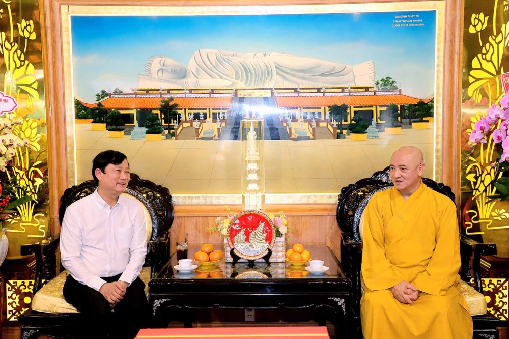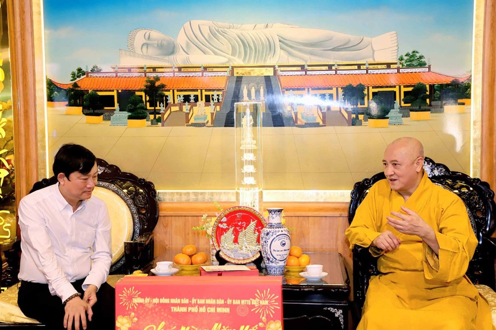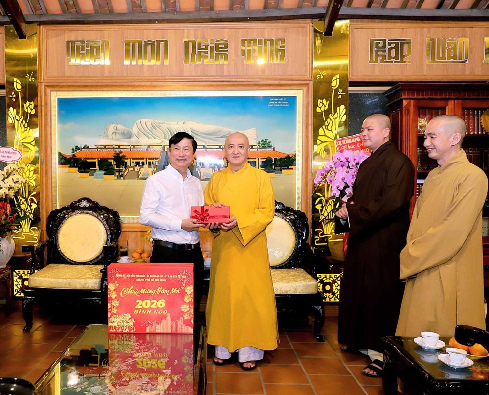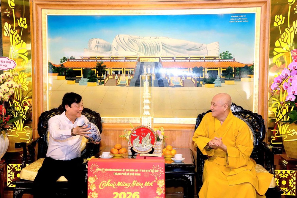PSO - Bên thềm Xuân Bính Ngọ, chiều ngày 21 tháng Chạp-Ất Tỵ (08/02/2026), tại Tổ đình Hội Khánh (số 29, phường Thủ Dầu Một, TP.HCM) đã tiếp đón phái đoàn đại diện lãnh đạo Thành ủy, HĐND, UBND, Ủy ban MTTQVN TP.HCM do Ông Võ Văn Minh - Ủy viên Ban Chấp hành Trung ương Đảng, Phó Bí thư Thành ủy, Chủ tịch HĐND TP.HCM làm Trưởng đoàn, cùng các thành viên đã đến thăm và chúc Tết cổ truyền của dân tộc đến HT. Thích Huệ Thông.