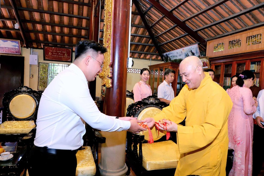Thân mật đón tiếp đoàn có: HT. Thích Huệ Thông - Phó Chủ tịch HĐTS, Trưởng ban Pháp chế T.Ư, Cố vấn Ban Trị sự PG TP.HCM, Trụ trì Tổ đình Hội Khánh; ĐĐ. Thích Huệ Nghiêm – Phó Thư ký BTS PG TP.HCM, phụ trách Văn phòng Ban Trị sự PG khu vực Bình Dương (cũ); Đại đức Thích Huệ Minh – Phó ban Thường trực Ban Hướng dẫn Phật tử Thành phố.