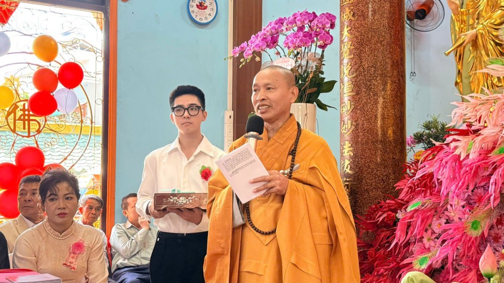 Thượng tọa cũng khuyến tấn đôi tân hôn luôn nương tựa Tam Bảo, giữ gìn năm giới, nuôi dưỡng đời sống đạo đức, để gia đình nhỏ trở thành một đạo tràng an lạc, góp phần xây dựng xã hội tốt đẹp và bền vững.