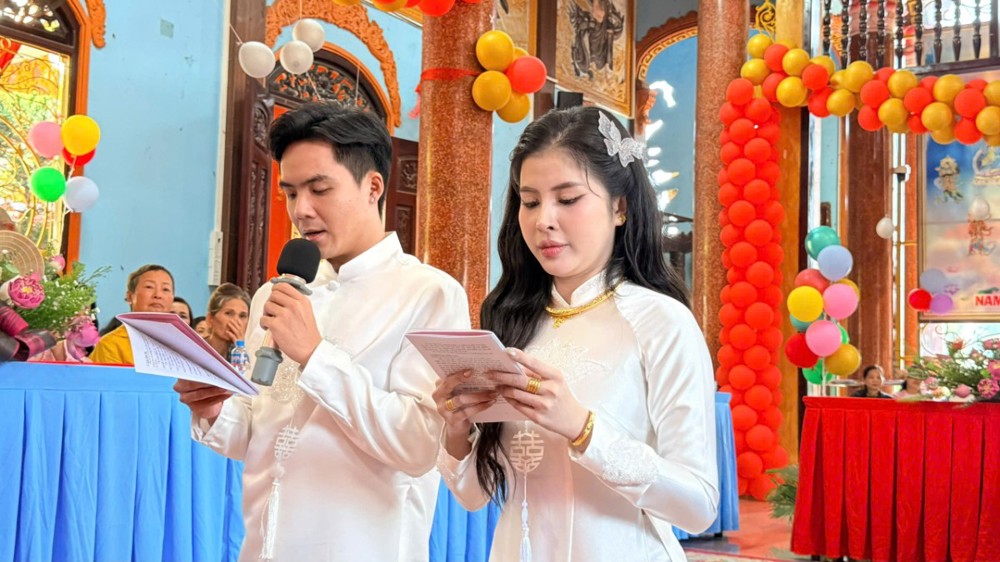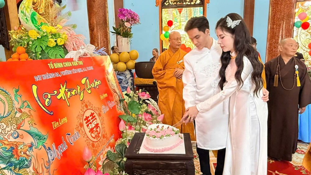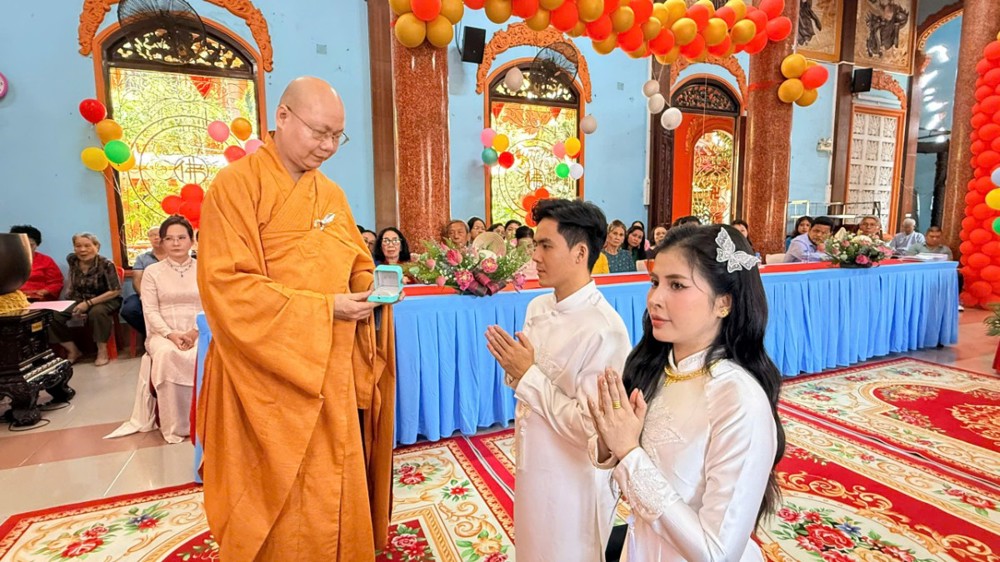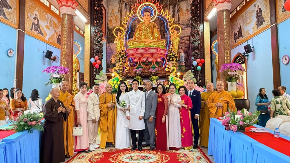 Trước Tam Bảo, trong không gian linh thiêng của mái chùa già lam, đôi bạn trẻ đã thành kính phát nguyện xây dựng đời sống hôn nhân theo tinh thần Phật pháp, lấy hiểu biết làm nền tảng, thương yêu làm phương châm, thủy chung và trách nhiệm làm kim chỉ nam, cùng nhau vun bồi hạnh phúc gia đình trong chánh niệm.