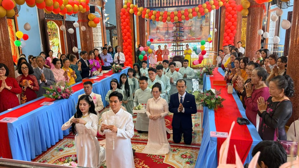 Buổi lễ khép lại trong niềm hoan hỷ của đại chúng, để lại dấu ấn đẹp về một lễ cưới mang đậm bản sắc Phật giáo, thể hiện rõ tinh thần: “Mái chùa che chở hồn dân tộc – Nếp sống muôn đời của Tổ tông.”