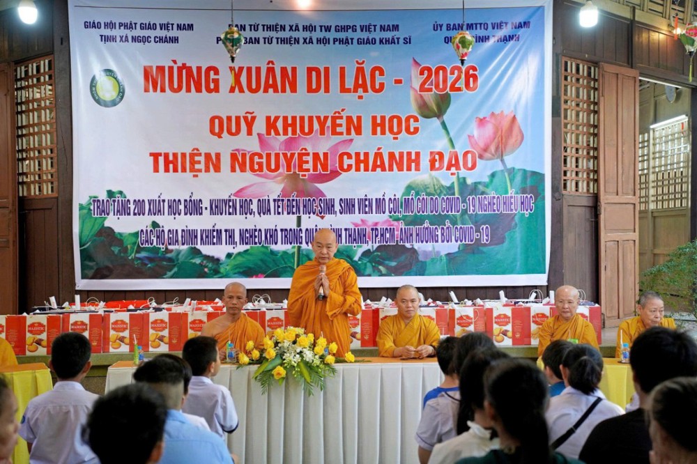 Phát biểu tại buổi trao quà, Đại đức Trụ trì cho biết, thấu hiểu những khó khăn của các em, Tịnh xá Ngọc Chánh đã vận động các mạnh thường quân, đặc biệt là Công ty TNHH Hồng Lợi Nam, đồng hành thường xuyên trong các hoạt động thiện nguyện, xem đây là nguồn động viên tinh thần giúp các em vững bước trong học tập và cuộc sống. Đại đức cũng chia sẻ thêm, trong năm qua, Tịnh xá Ngọc Chánh cùng nhóm Thiện nguyện Chánh Đạo đã thực hiện các pháp sự và công tác an sinh xã hội với tổng kinh phí trên 3 tỷ đồng.