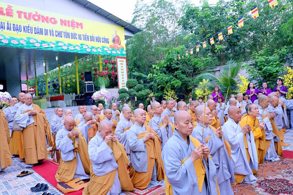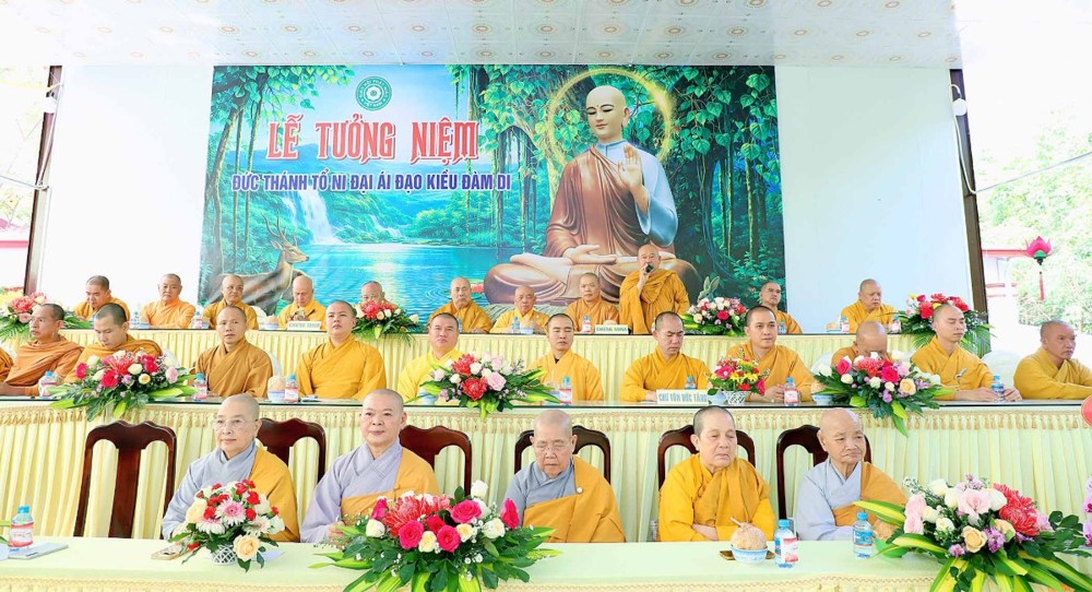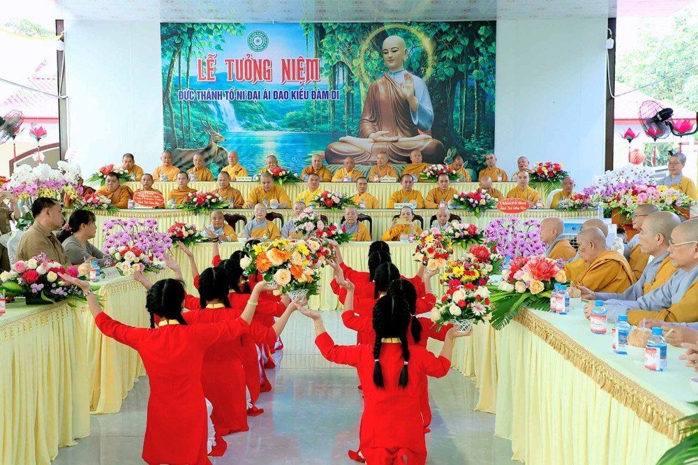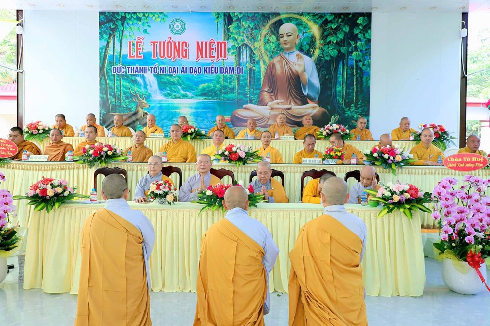 "Nhớ khi xưa, nơi đất thánh, Đức Đại Ái Đạo - Kiều Đàm Di tỏ ngộ pháp mầu giã từ ngôi báu, rũ bỏ hoàng bào, khoác áo ca-sa, cùng 500 thế nữ, chân trần vạn dặm, nguyện xin xuất gia, nhập dòng Thánh đức, lãnh đạo Ni đoàn, học pháp chân nhân, sống đời phạm hạnh, lòng từ ban rải, hạnh thanh cao ấy khiến trời người hoan hỉ, nữ giới khắp nơi quy hướng, tu học đạo mầu. Cuộc đời hành đạo, hóa đạo của Đức Thánh Tổ Ni Đại Ái Đạo là tấm gương sáng ngời cho nữ giới hậu học noi theo", Ni trưởng Thích nữ Như Định dâng lời cảm niệm.