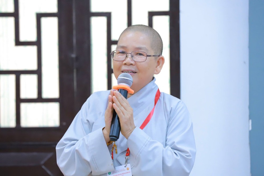 Ni trưởng Thích Nữ Nhật Khương thay mặt Thường trực Phân ban Ni giới Trung ương phát biểu đúc kết, ghi nhận những ý kiến tâm huyết, trách nhiệm của chư Ni các địa phương.